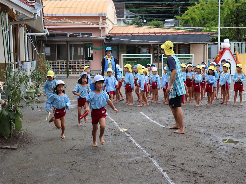 年長さん、初めてのリレーの練習です。