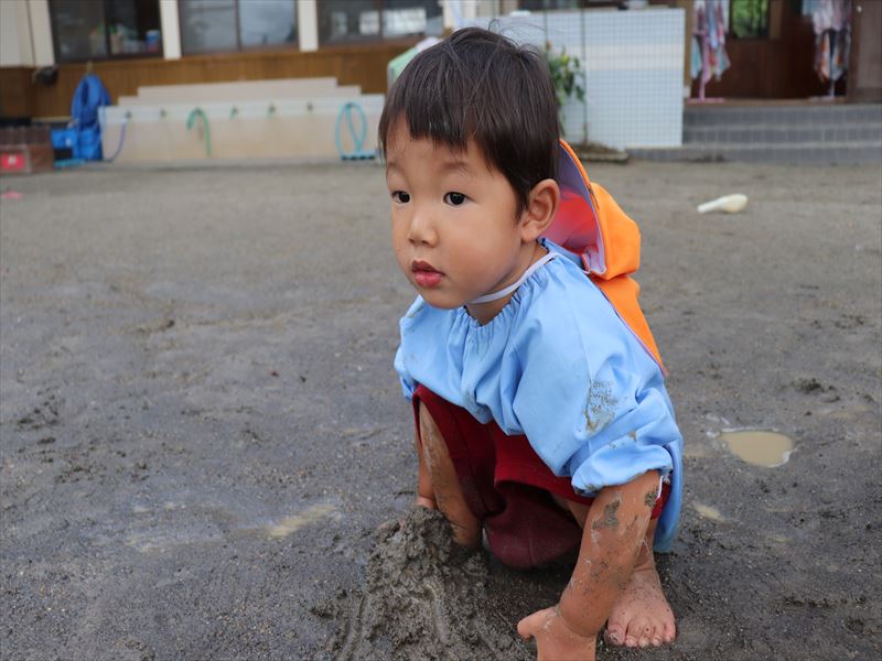 年少々さん、園庭で泥遊びをしましたよ!