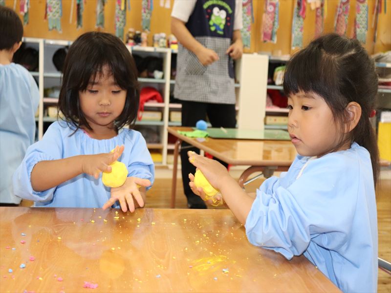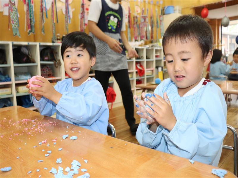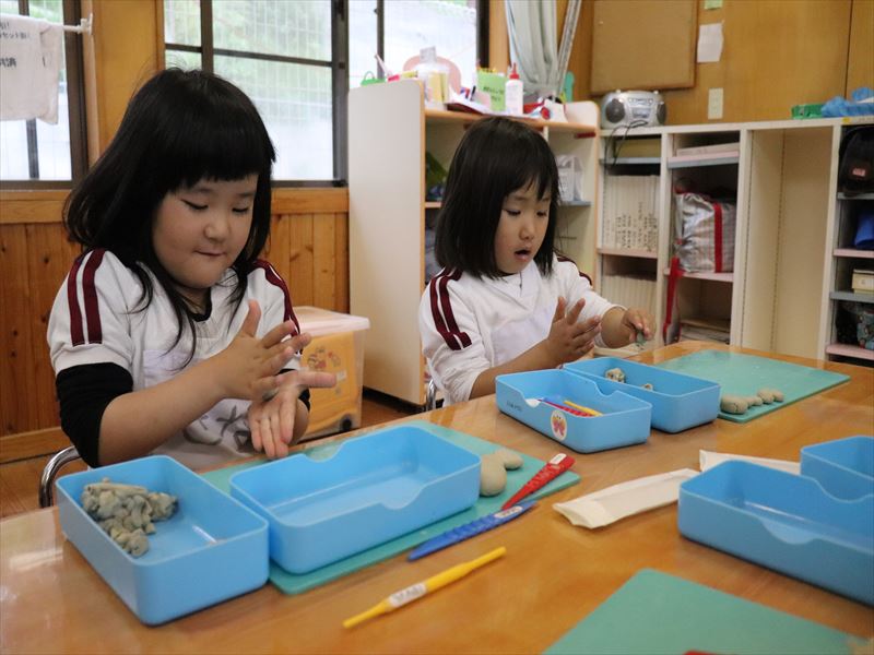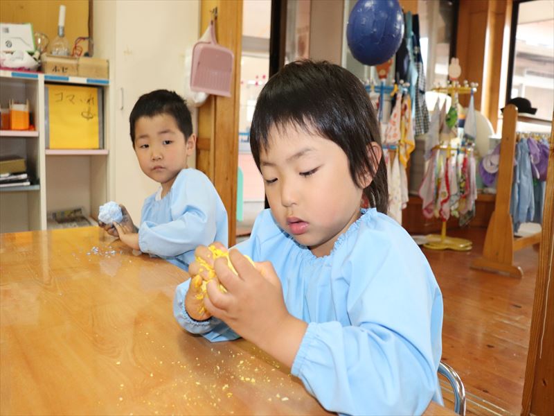 紙粘土の感触も楽しめたね
