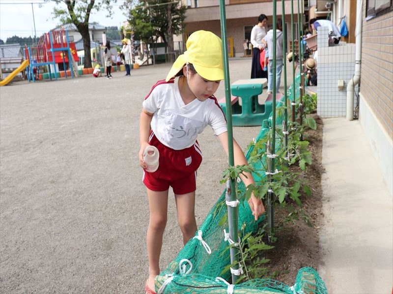 年長さん、アサガオの種を植える準備をしました