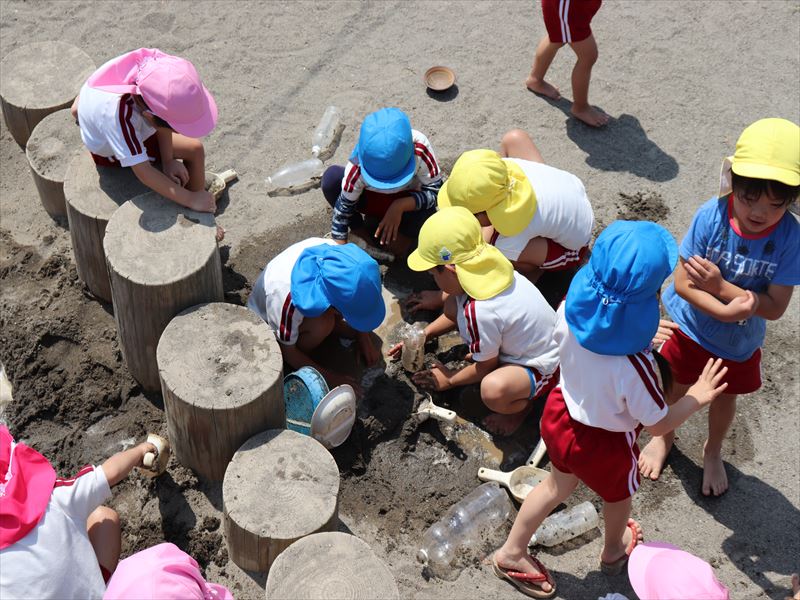 水の流れ、水路などひらめきがいっぱいの砂場