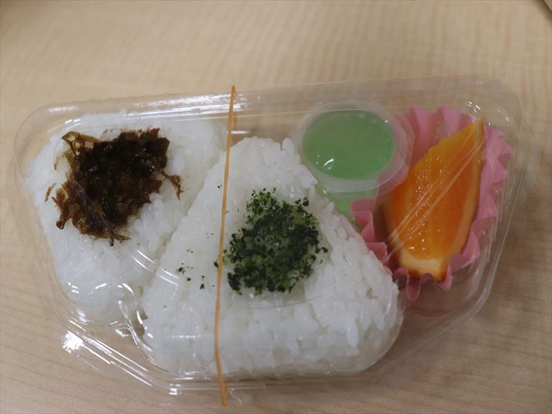 今日のおにぎり給食のメニューは、こんぶと青のりでした。