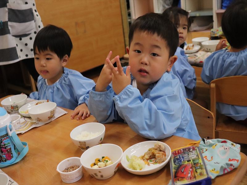 保育園部さんも給食をいただきます。