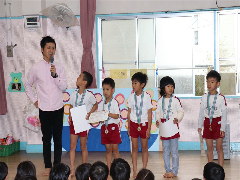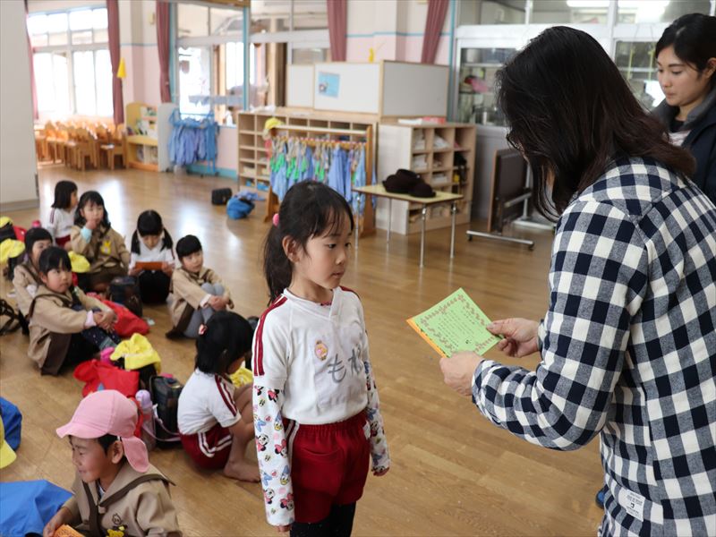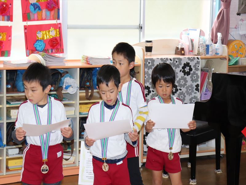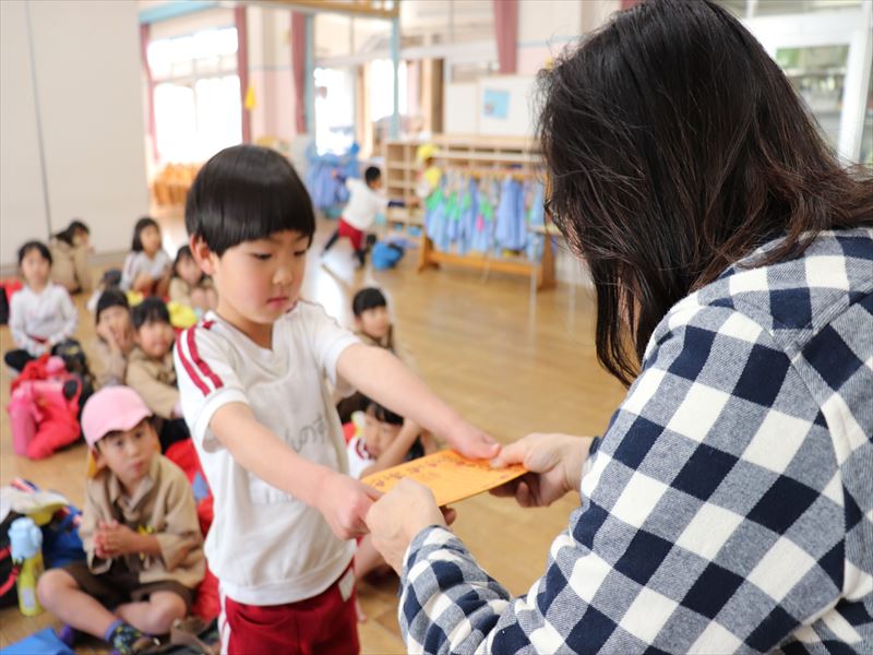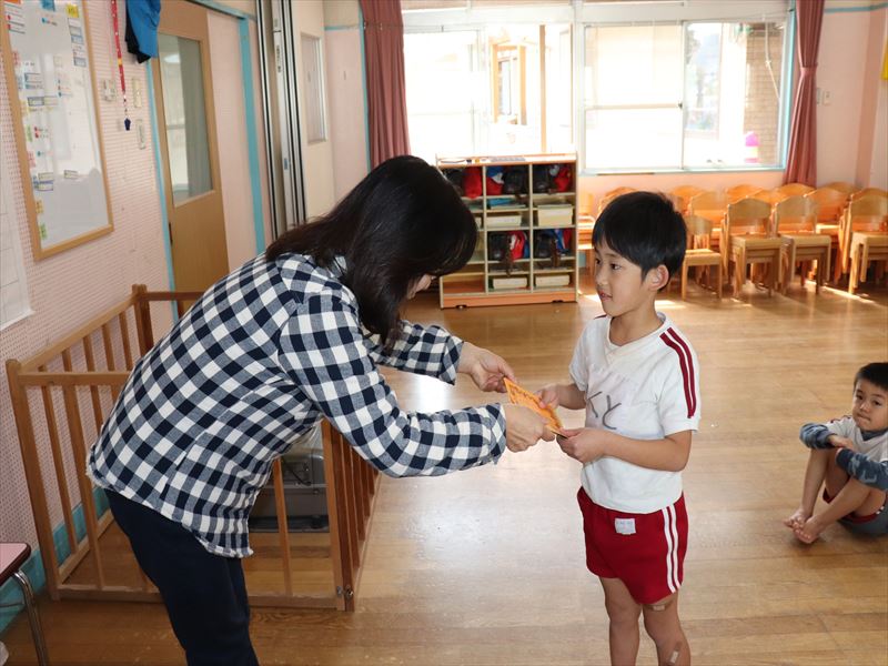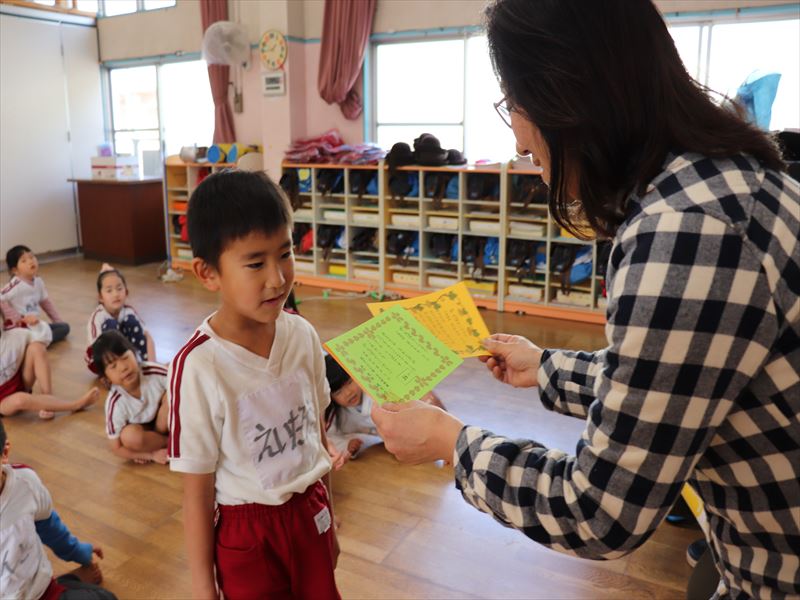 たんぽぽ組さん、がんばり表彰状の授与式です。