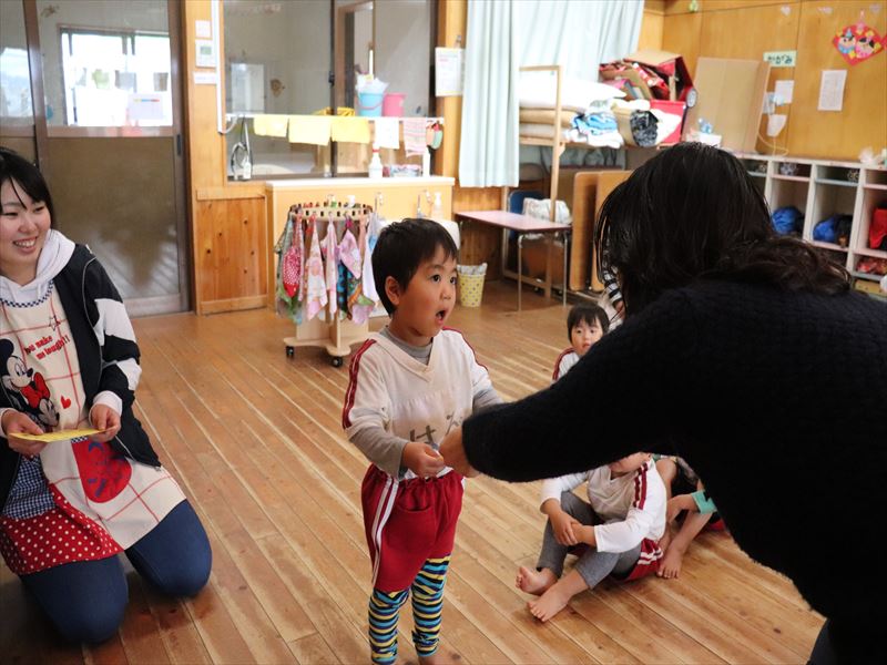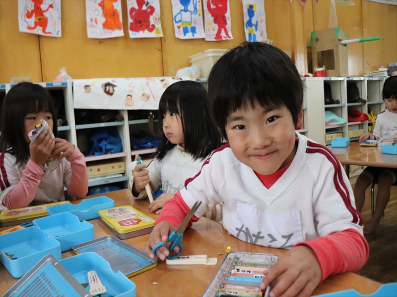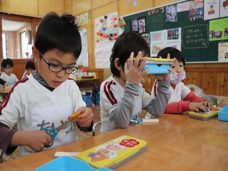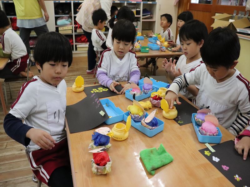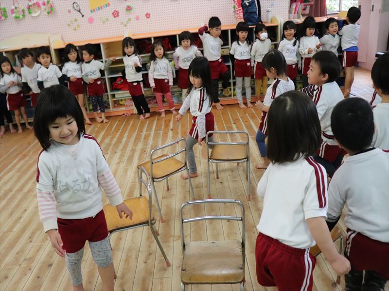 ばら組さんはおもちゃを作り、さくら組さんではいす取りゲームをしていました。