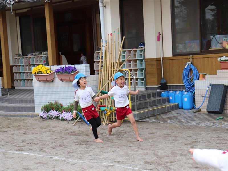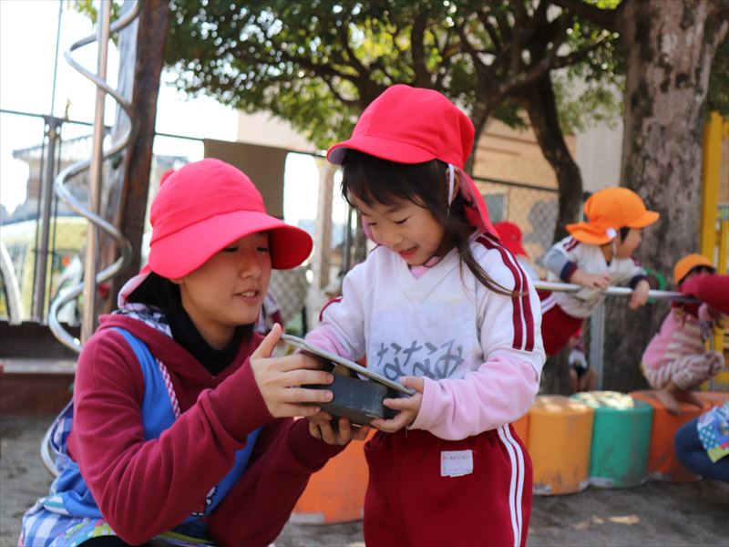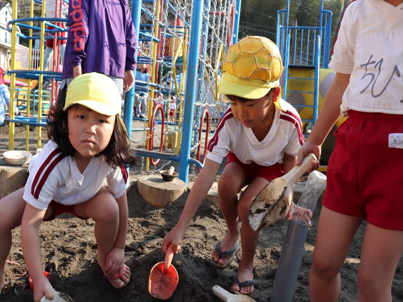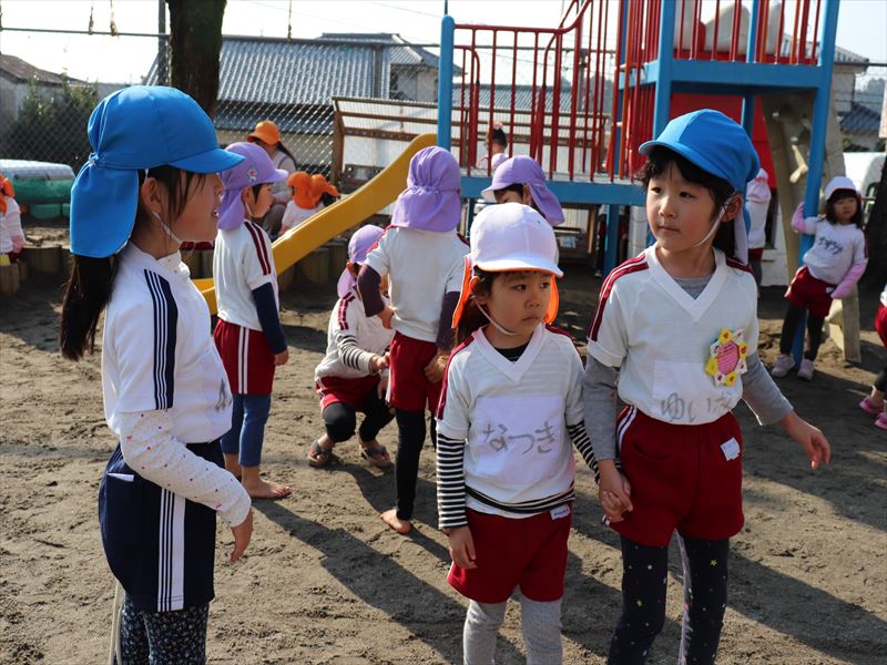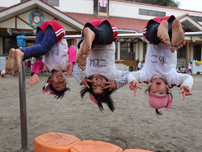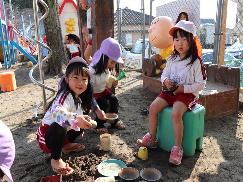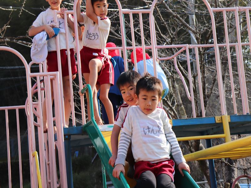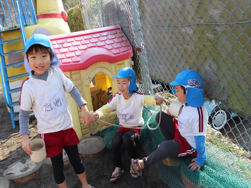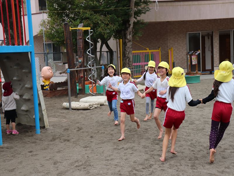 朝の外遊びの時間を楽しんでいました