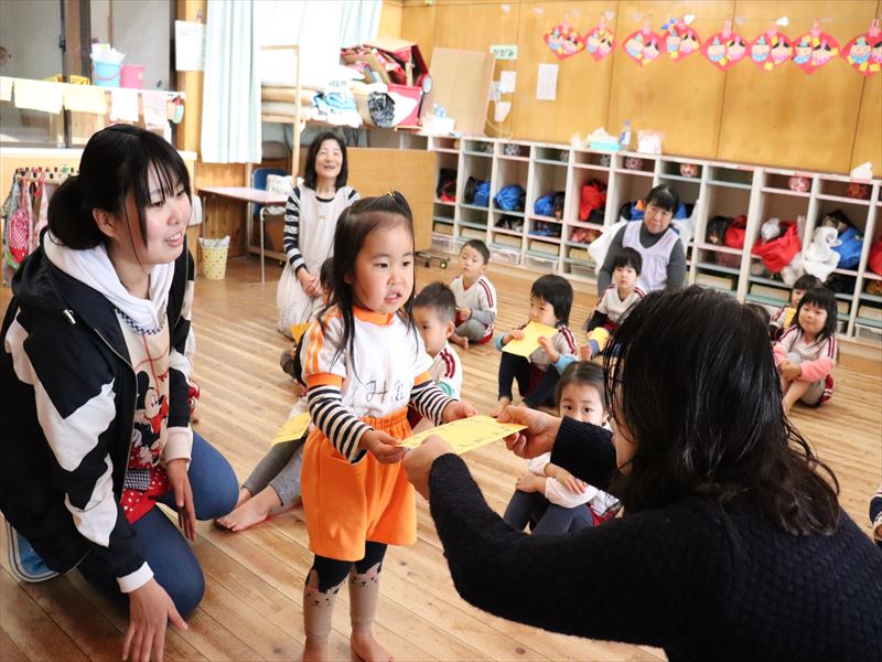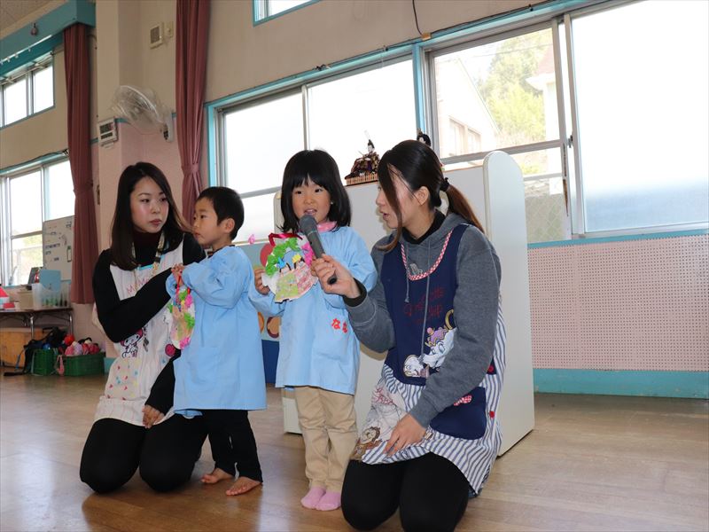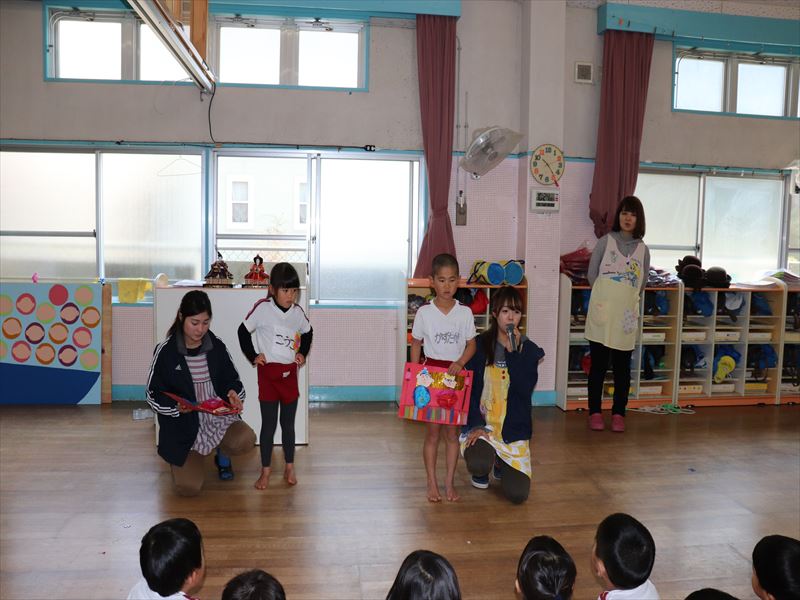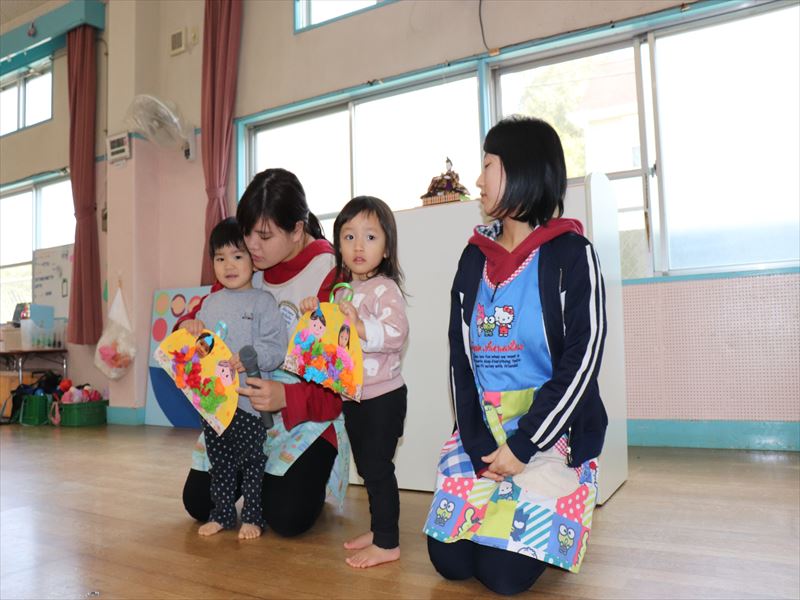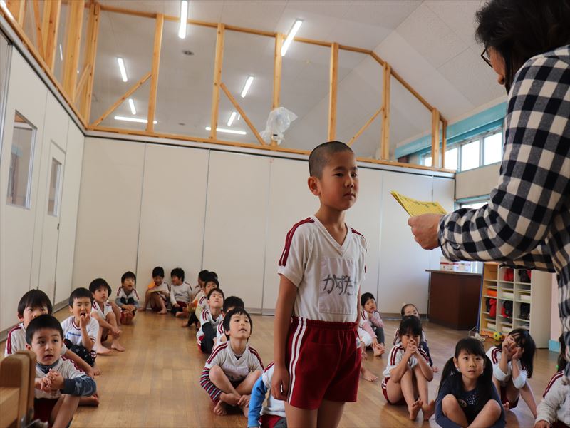 月曜日は集会を行い、2月でお別れする子の紹介をみんなの前で行いました。