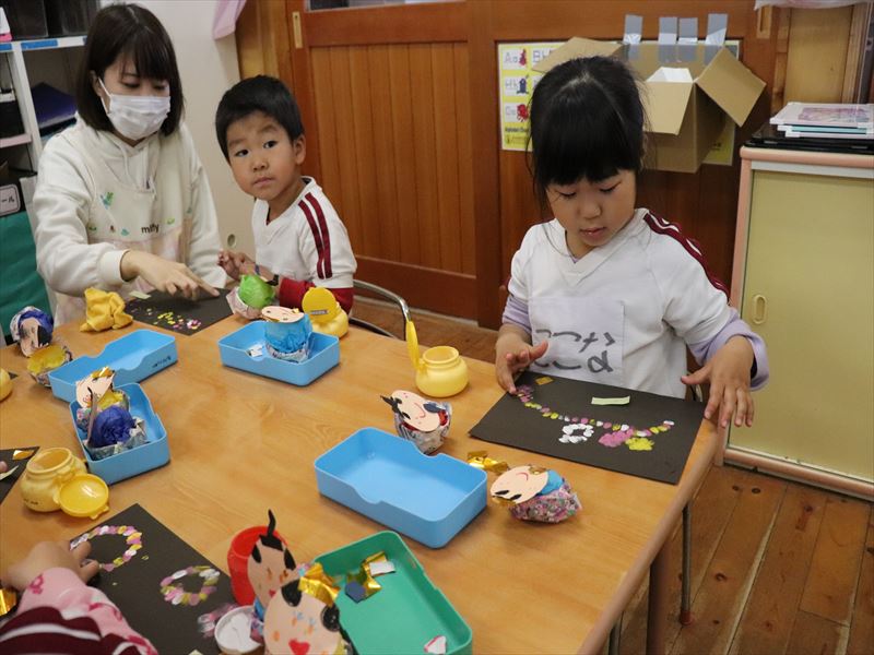 年中さんはひなまつり製作の続きだね