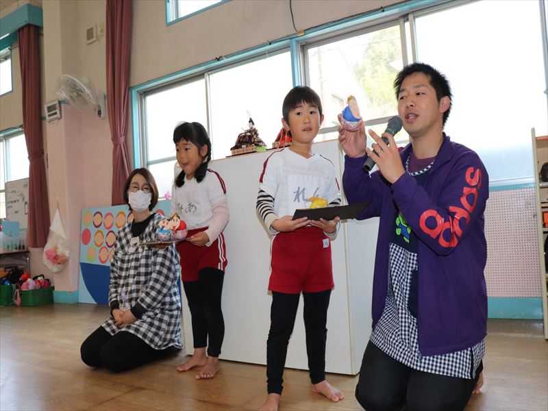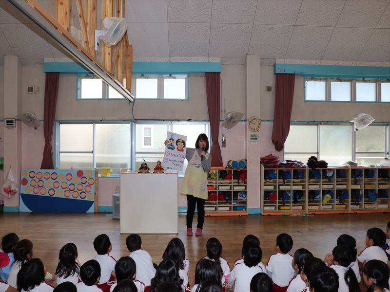 ひなまつりの話を聞き、各学年の作品を披露しあいました