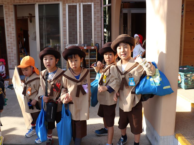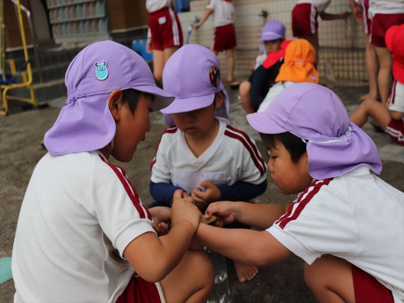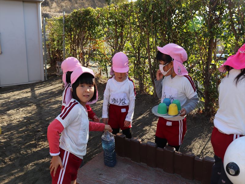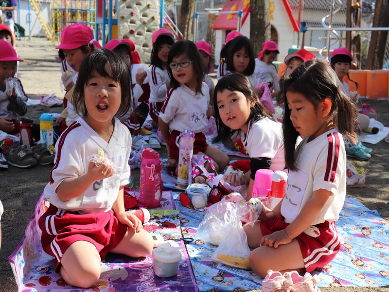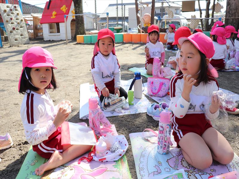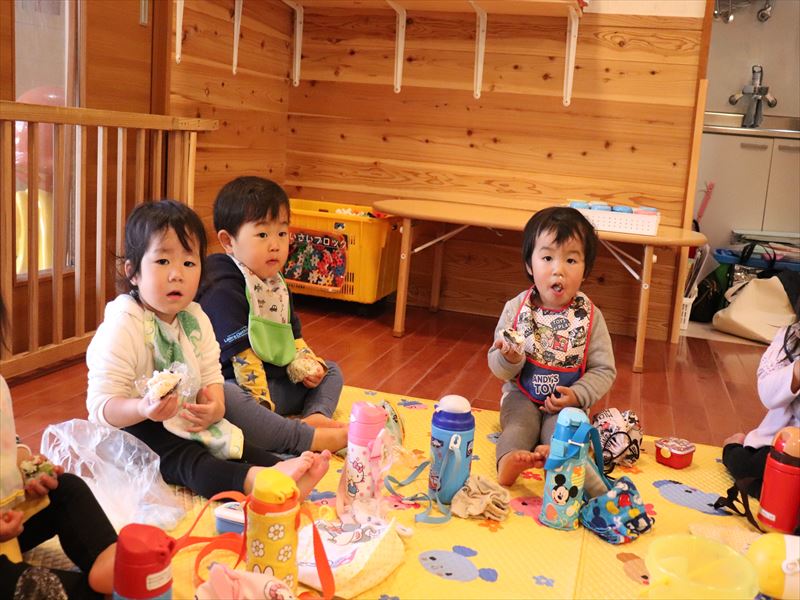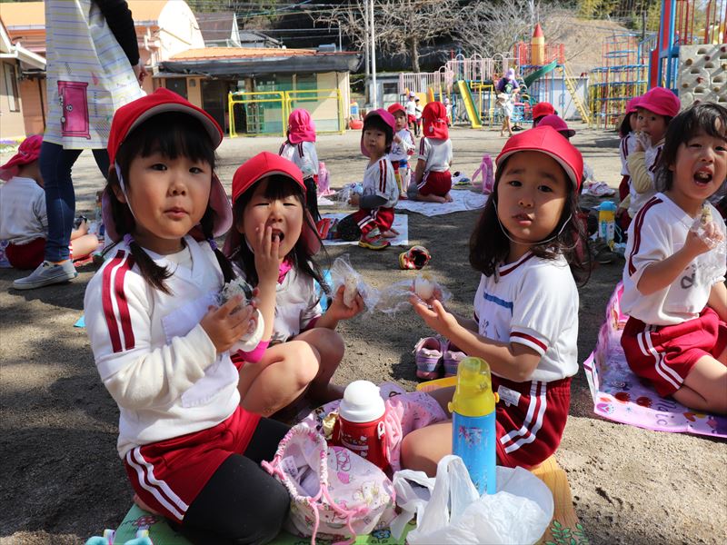 年少さんは外でおにぎりを食べました♪