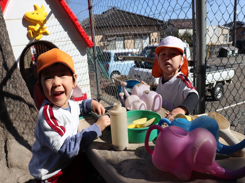 ぽかぽかのお日様の光をあびてのんびり外遊び