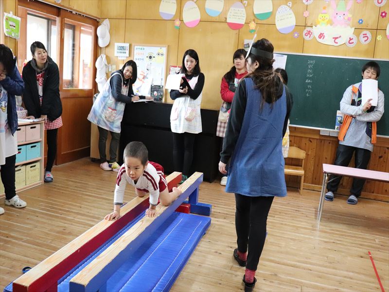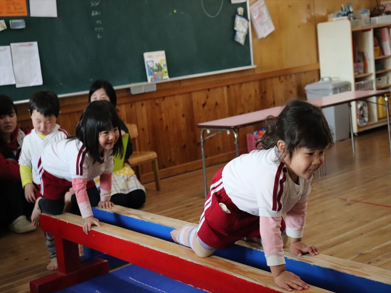 室内での運動遊び、マットや平均台