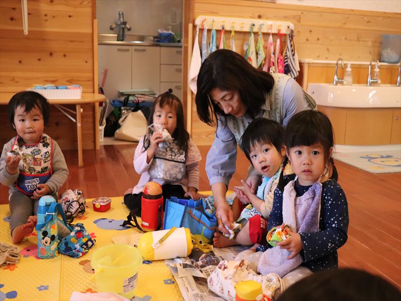 1歳児さんも、おにぎりいただきます♪