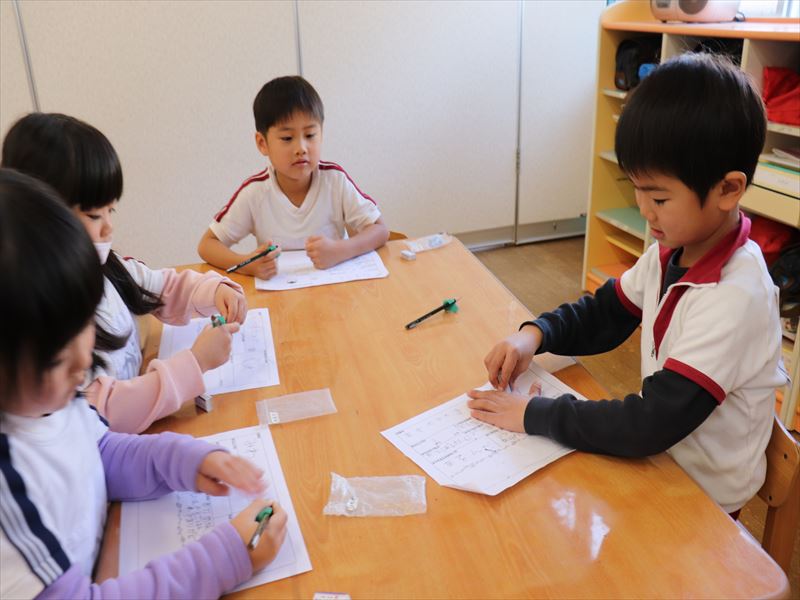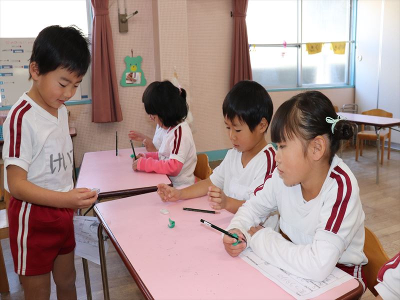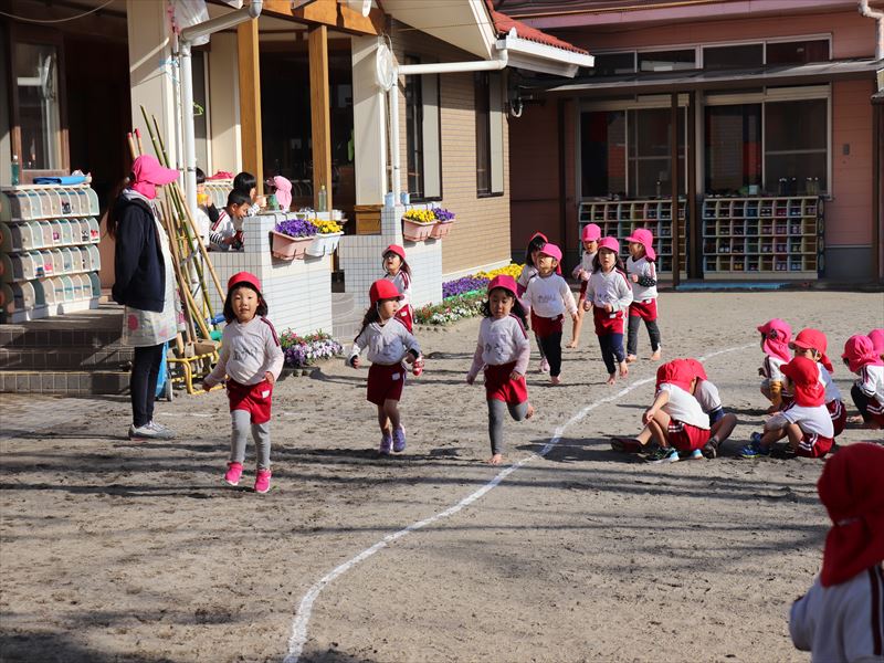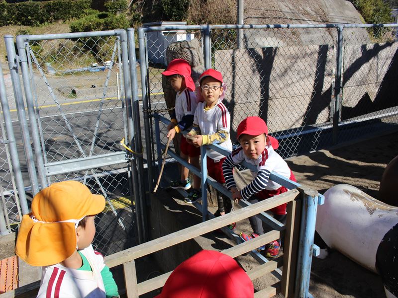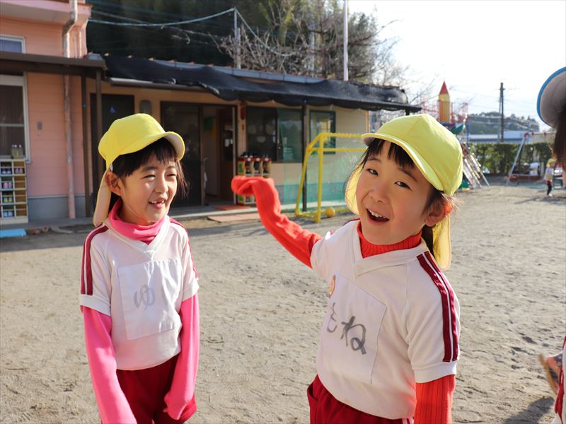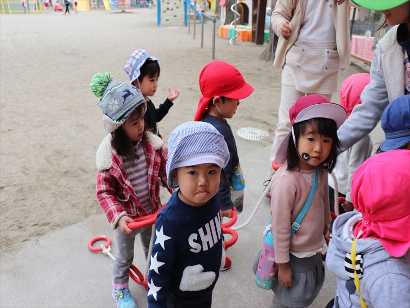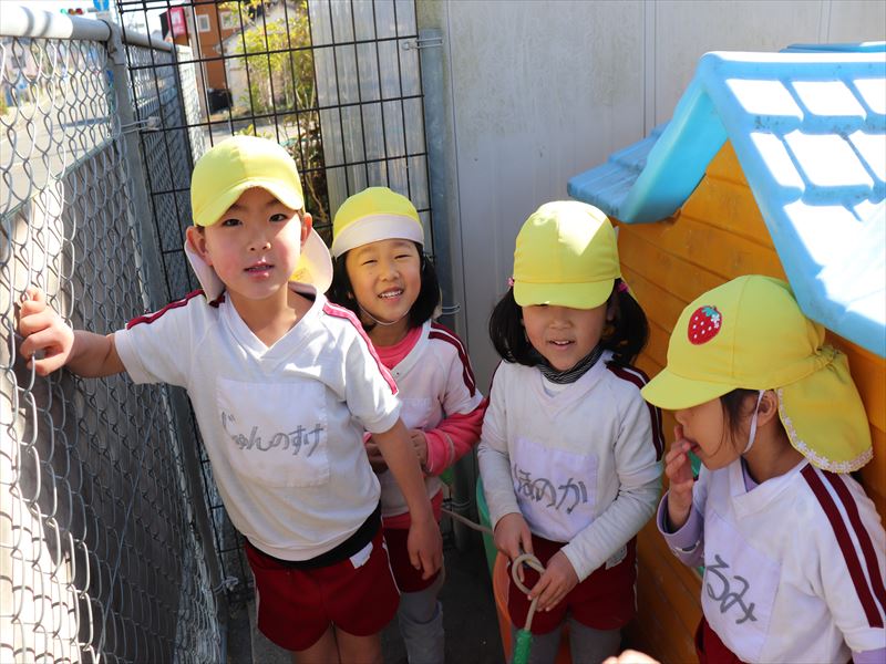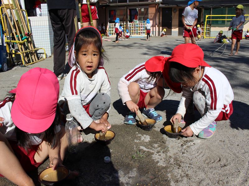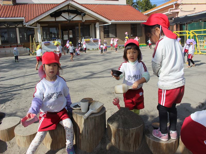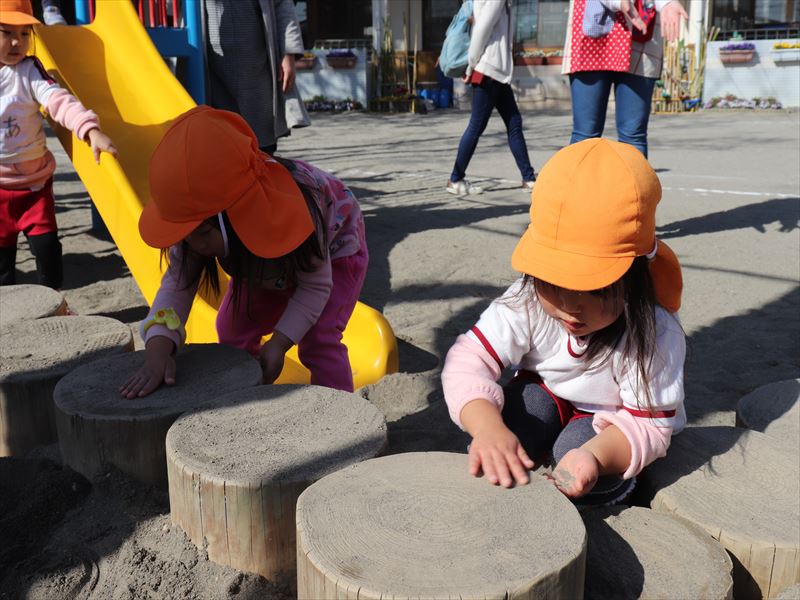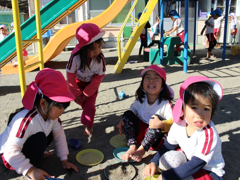 朝の外遊びの時間、砂場の周りに集まっていたね。