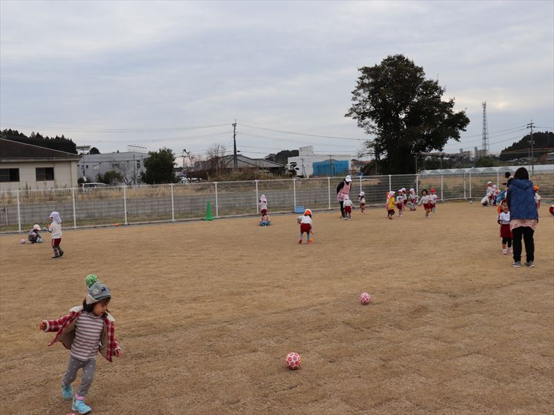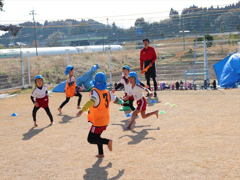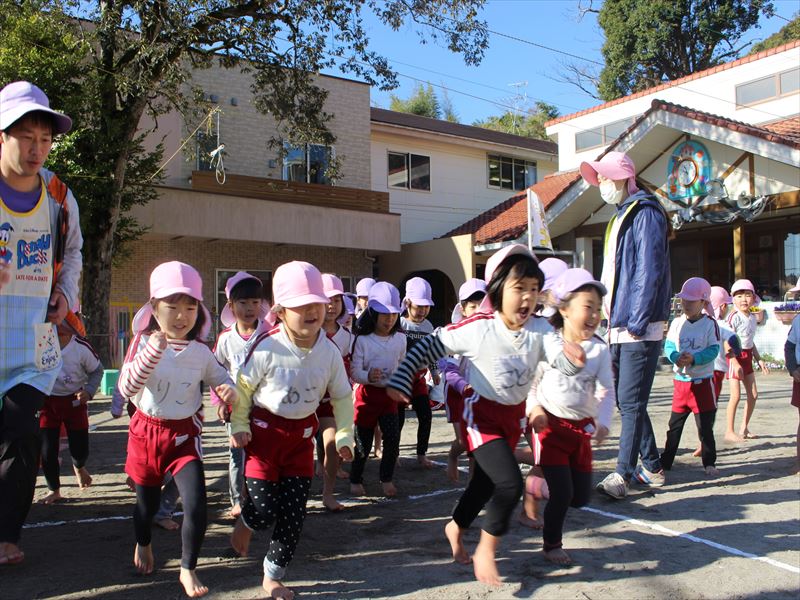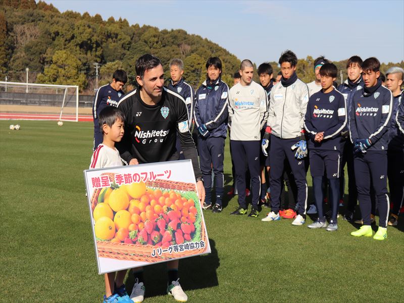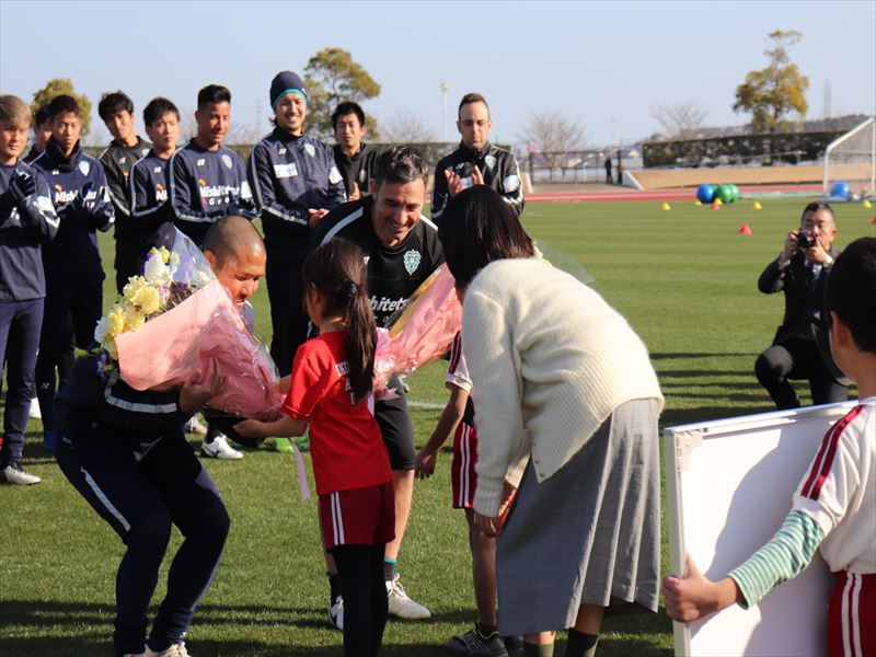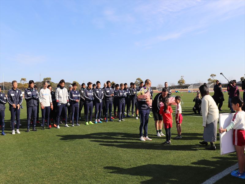 生目幼稚園のサッカー教室のみんなが、アビスパ福岡の宮崎キャンプ歓迎セレモニーに招待されました。