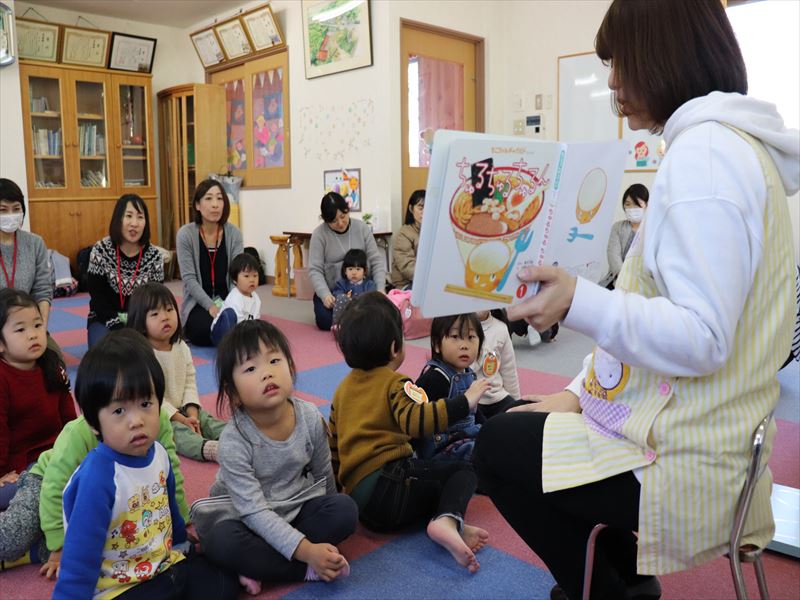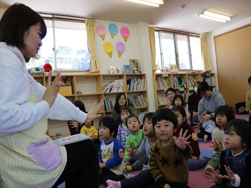 歌をうたったり、手遊びをしたり、今日は絵本を読んだね。