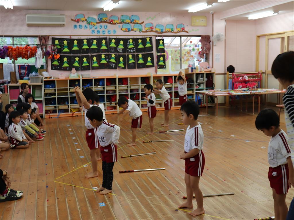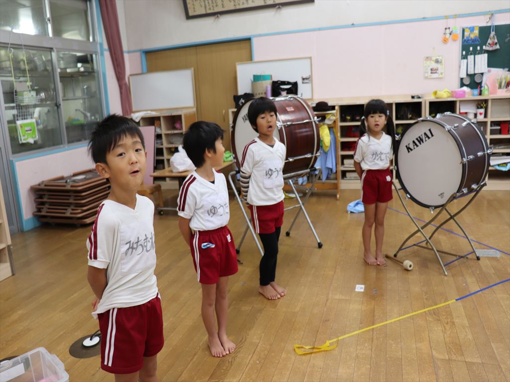 年長さんは、ホールで学年練習です。