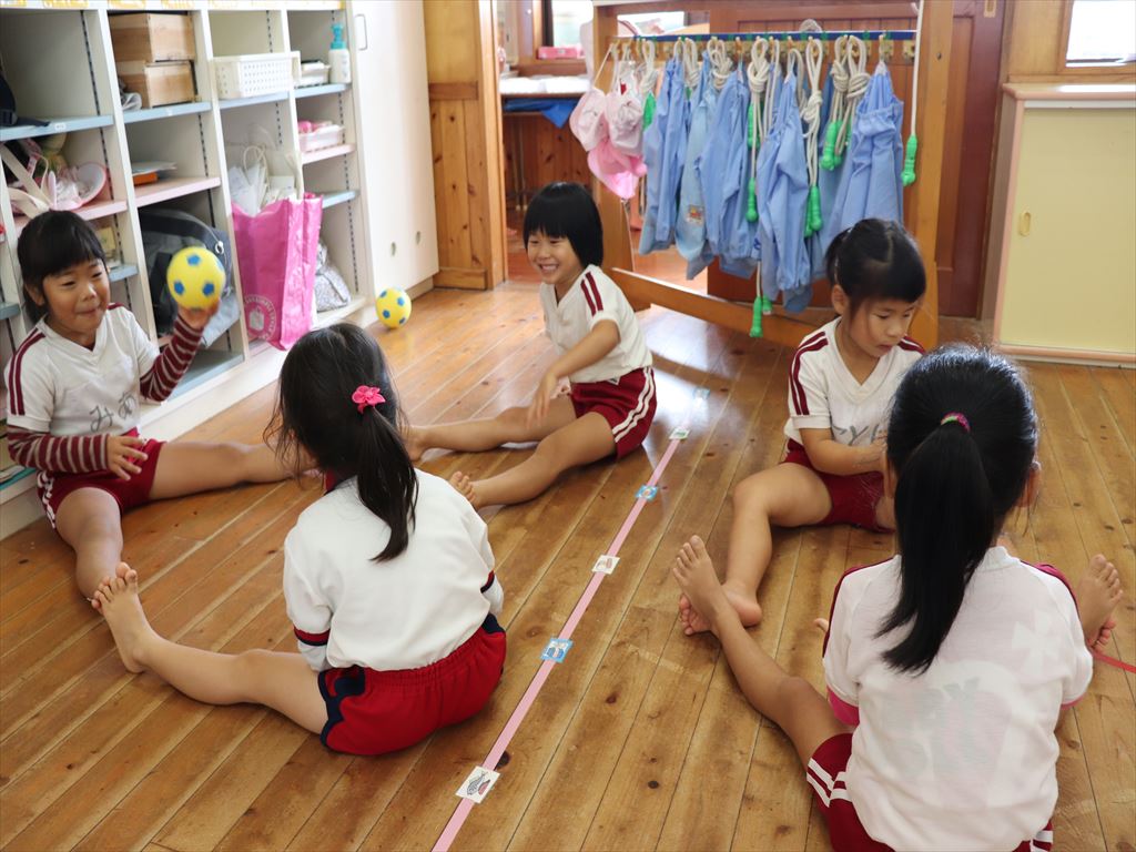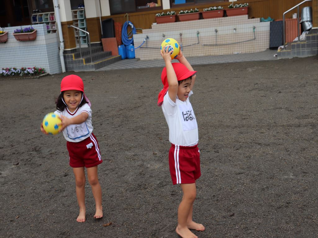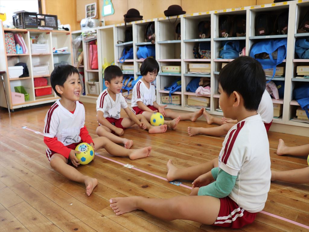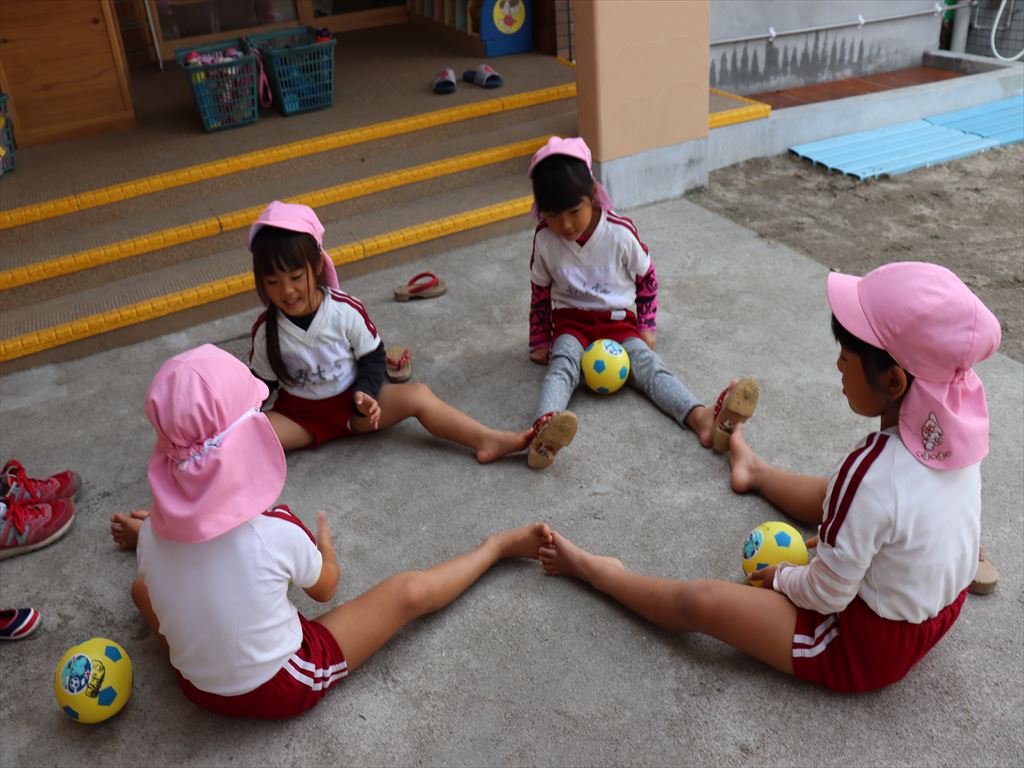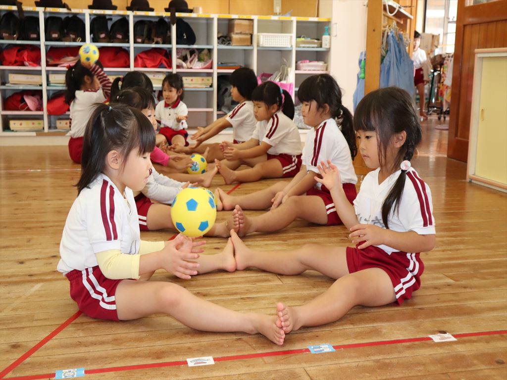 もも組さんはボールを使って遊んでいます。