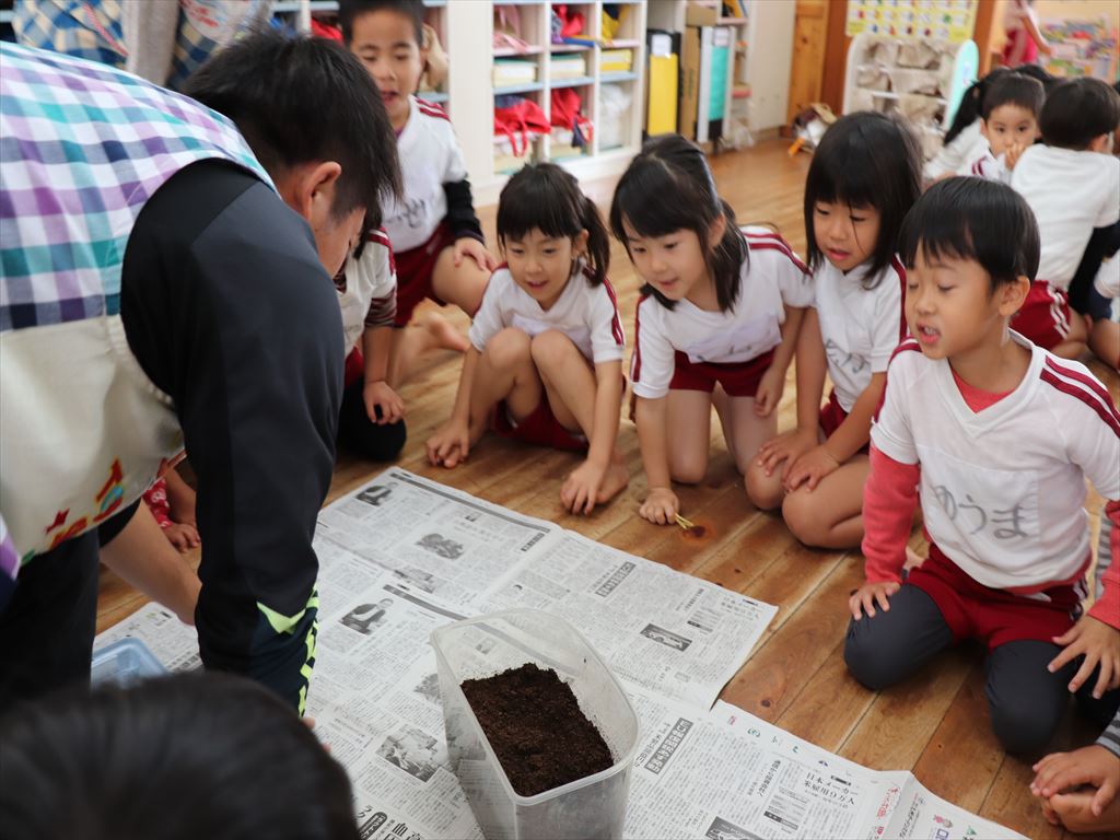 カブトムシの幼虫を頂き、主に年中さんで育てることにしました。