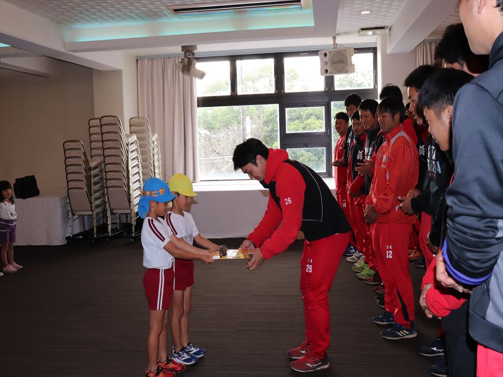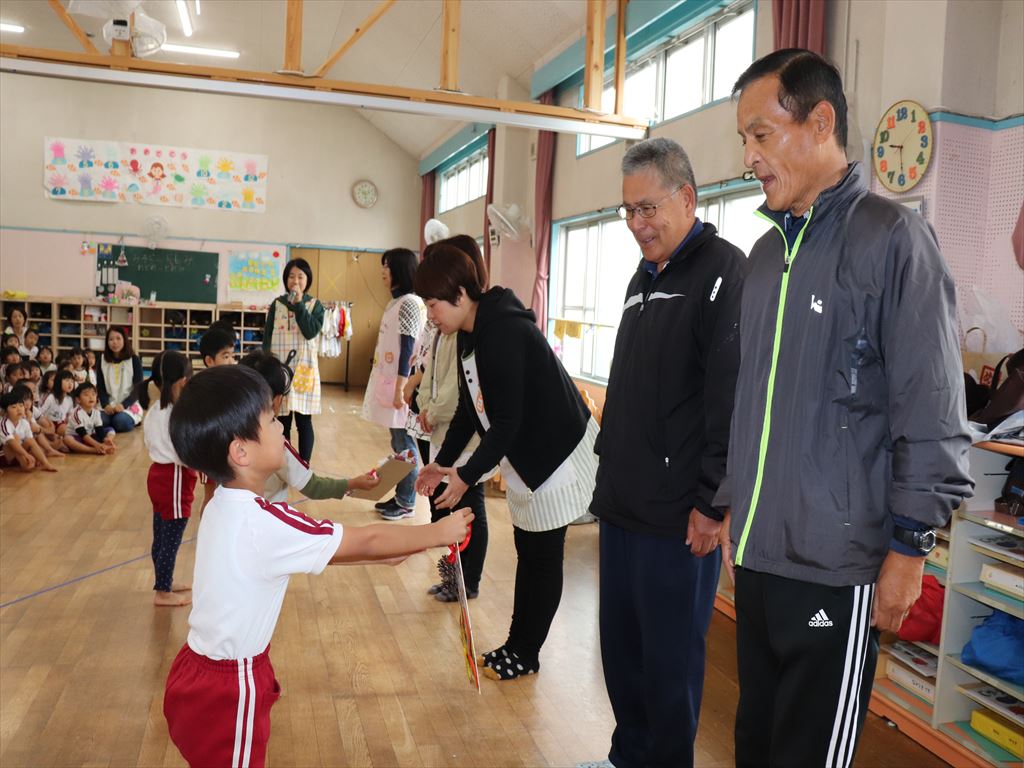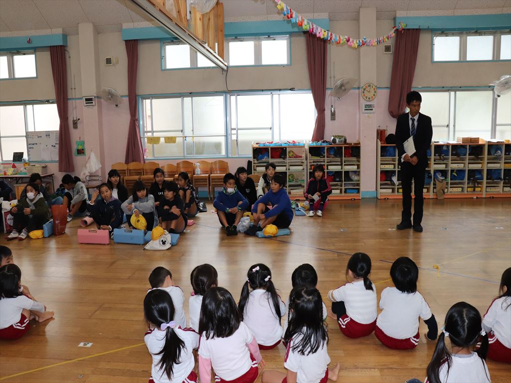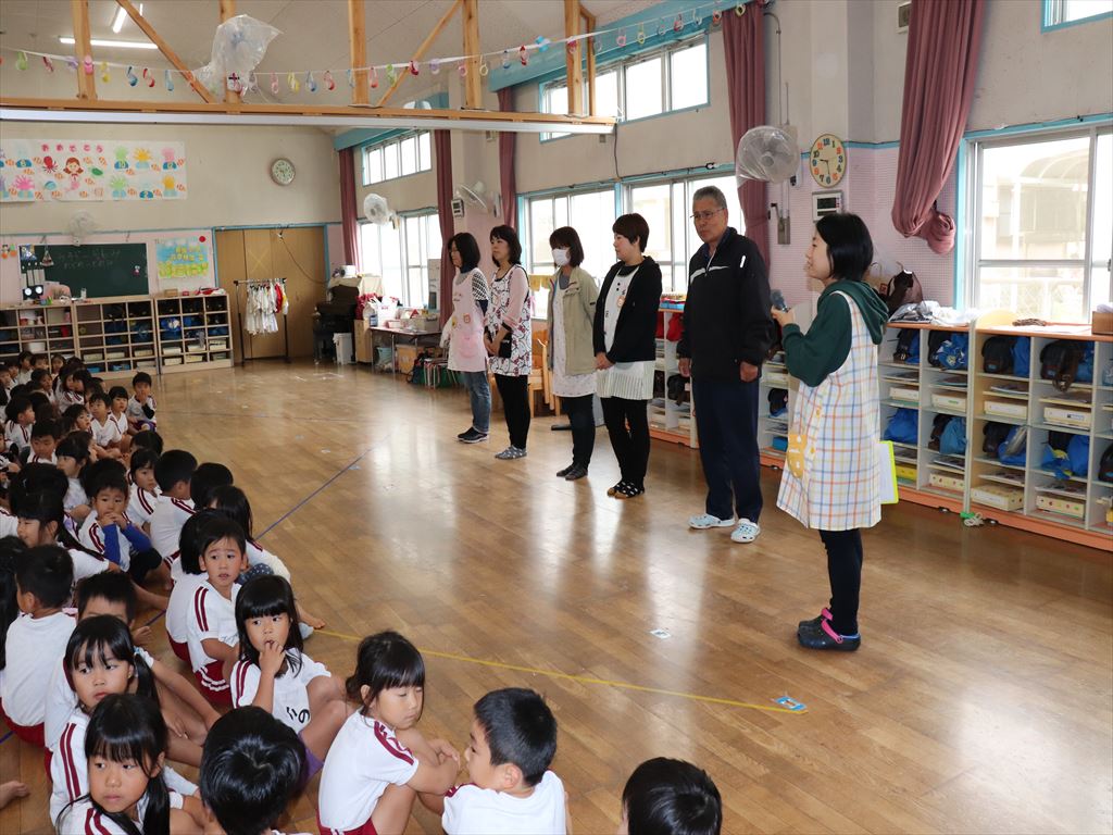 年長さんは今年、交通安全ルールや野球を教えていただきたお礼を伝えに行きました。