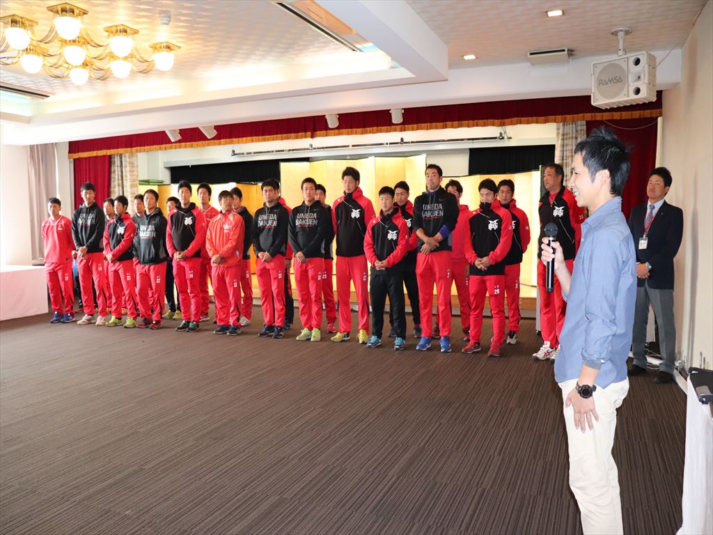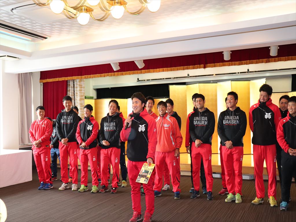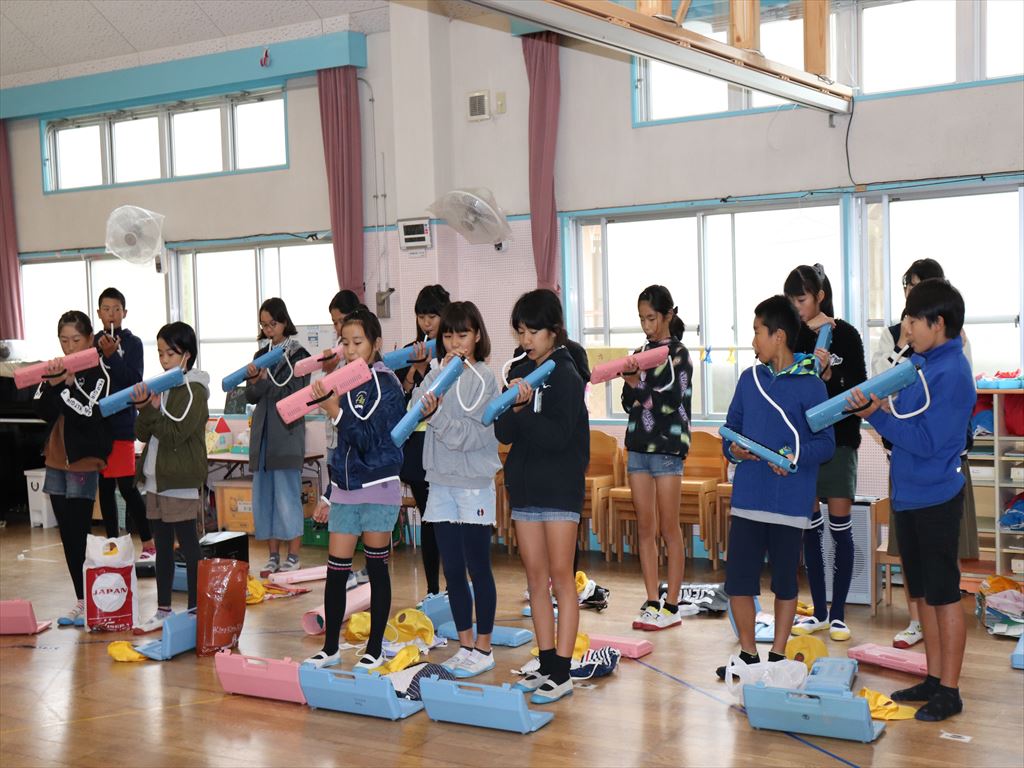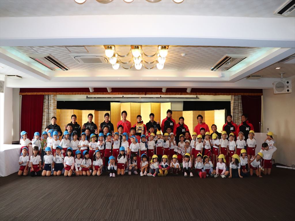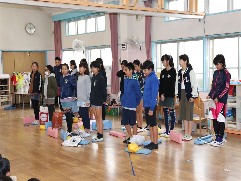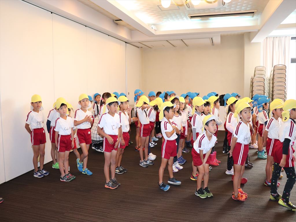 梅田学園の皆さんの前に少し緊張気味の子ども達、