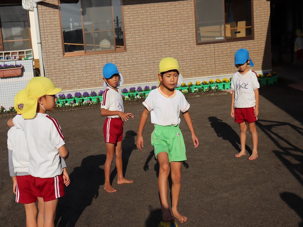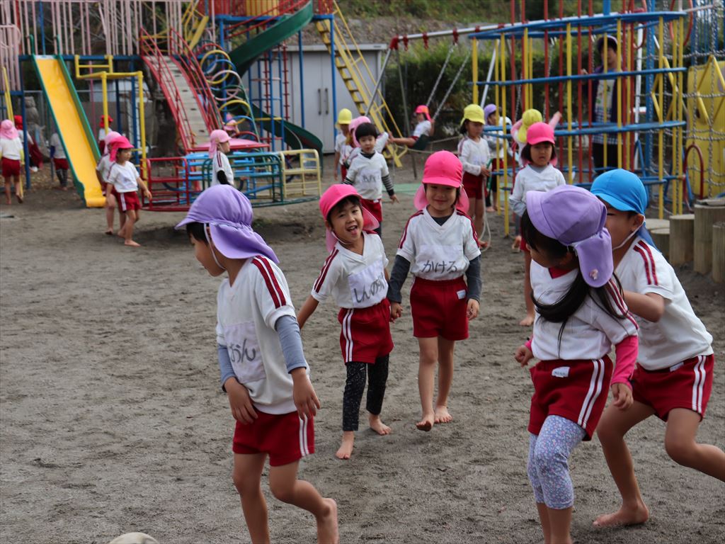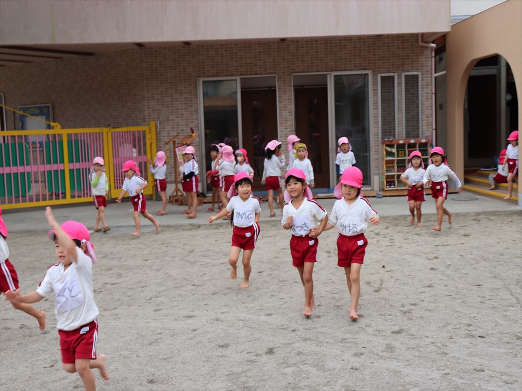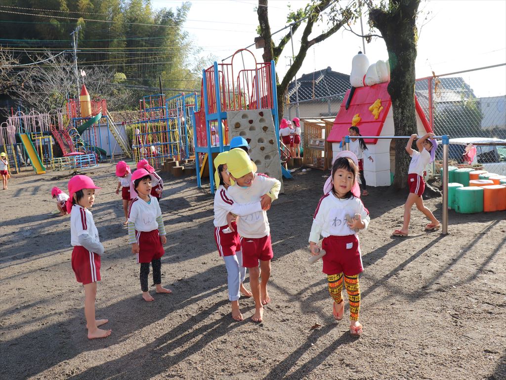 朝の自由あそび、元気な子ども達です。