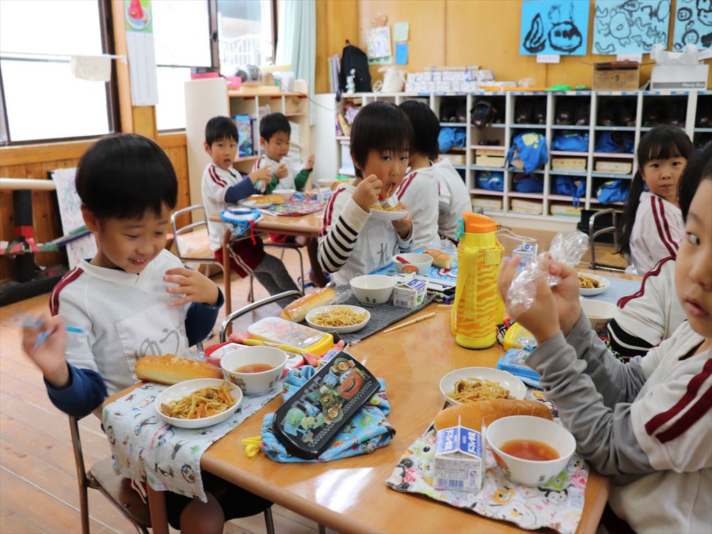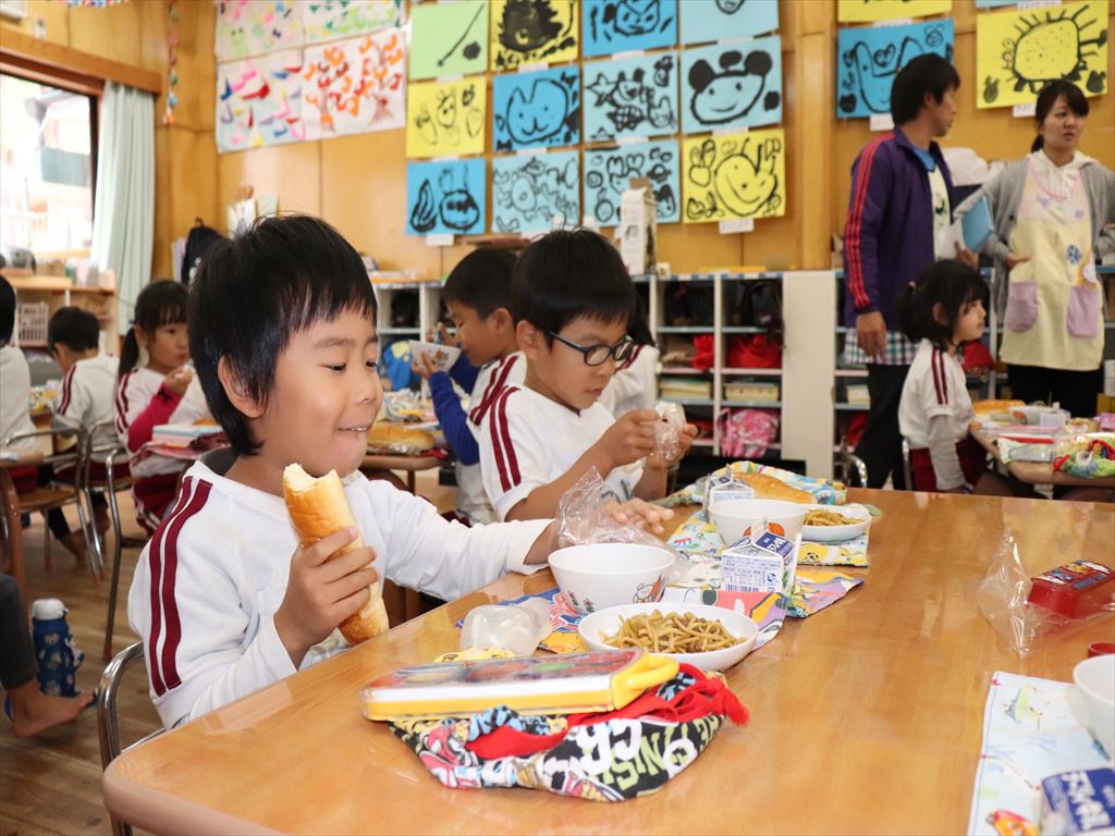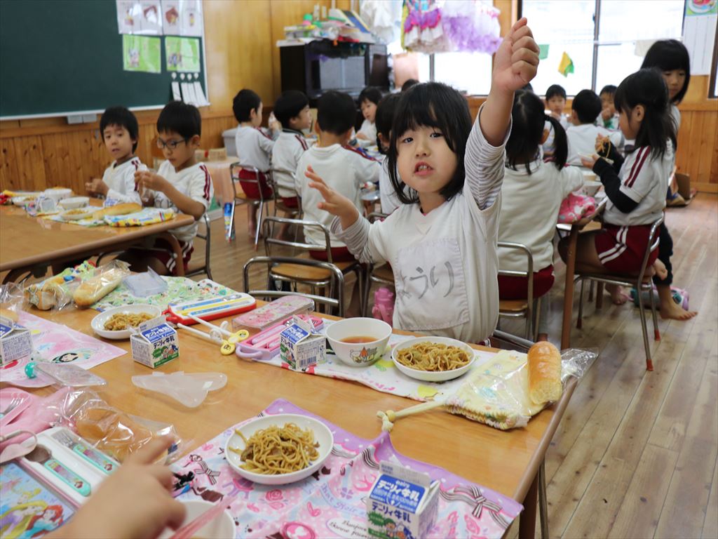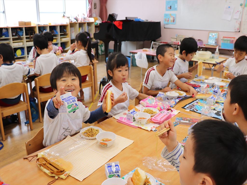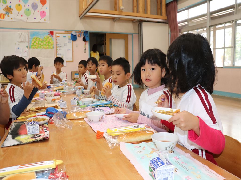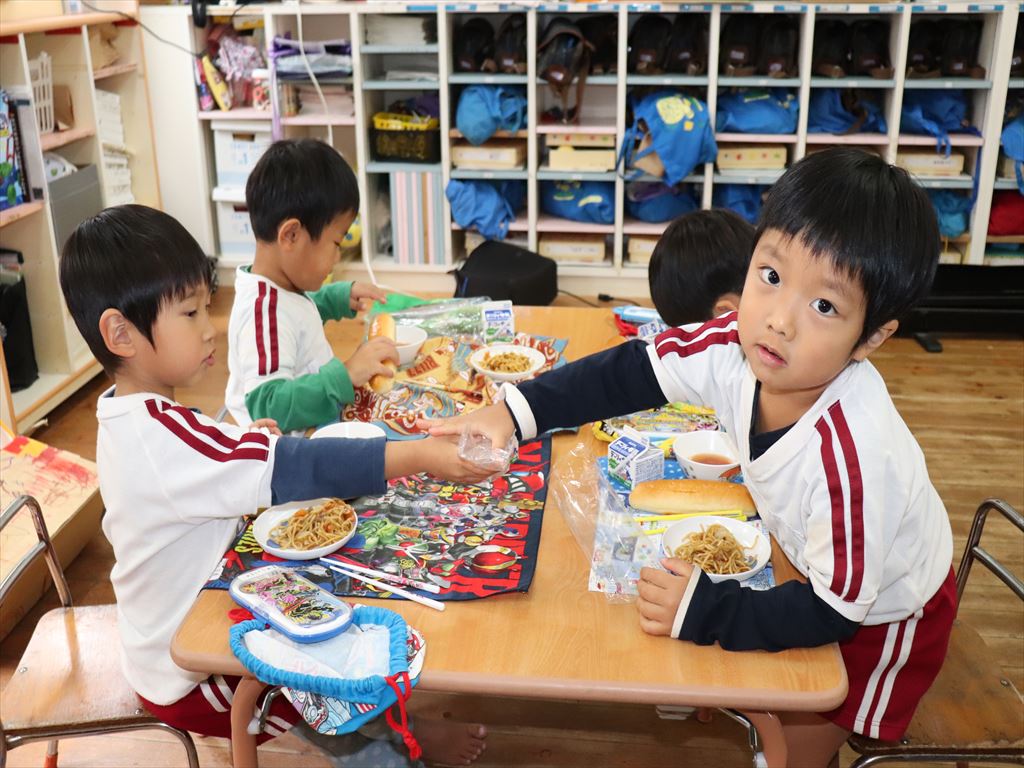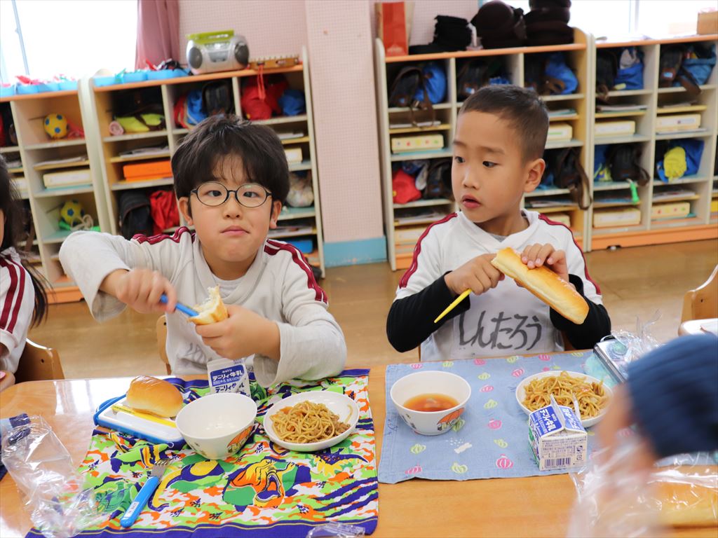 パンの中に焼きそばを挟んで食べる子もいました。