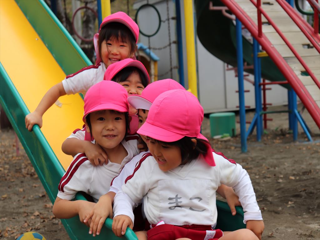 みんなと一緒に滑り台しゅ~