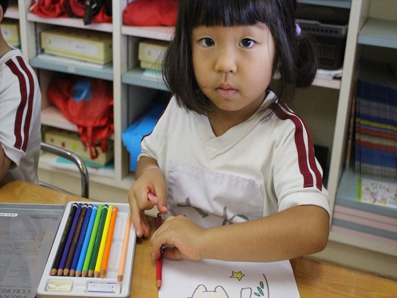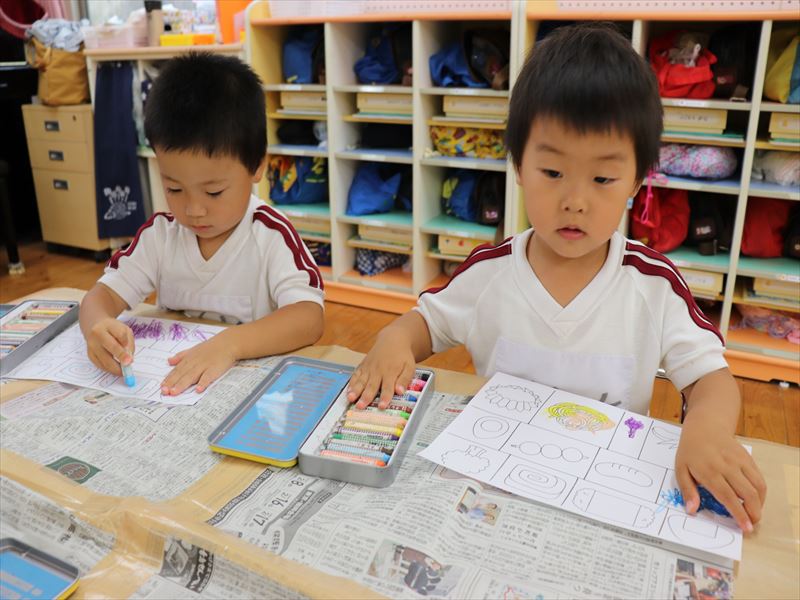 年中さん、色鉛筆を使って色塗りです