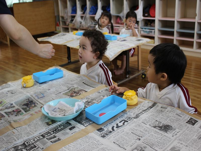 未就園児教室つぼみくらぶでもプールあそびを楽しみました。