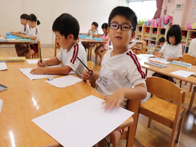 年長さんはえんぴつを使った活動です。