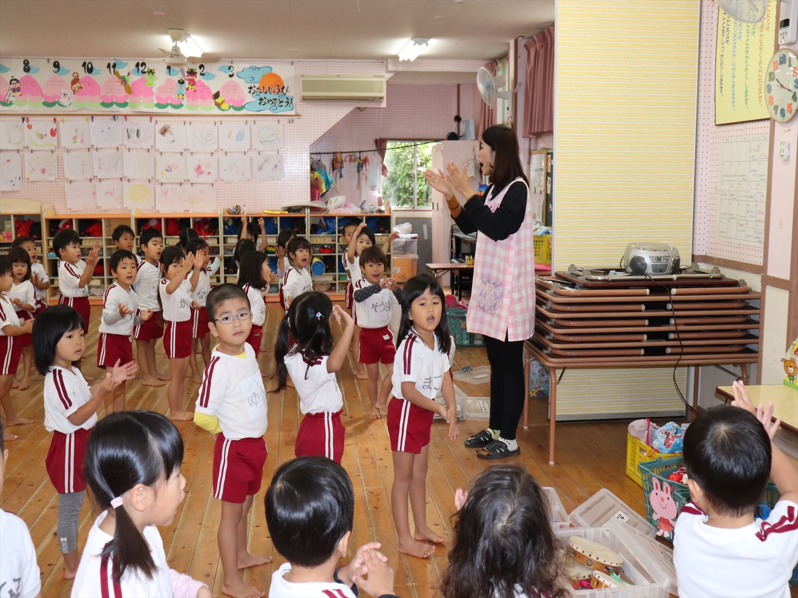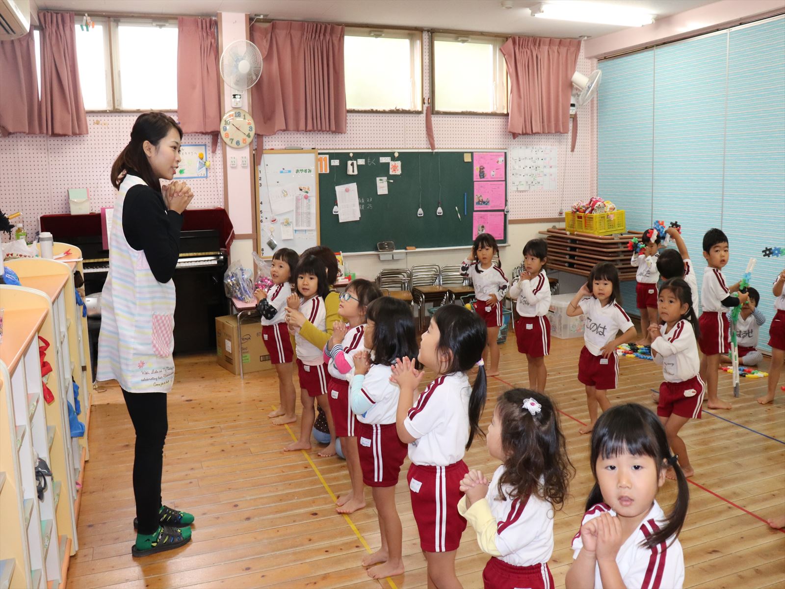 もも組さん、出席点呼をしていました。