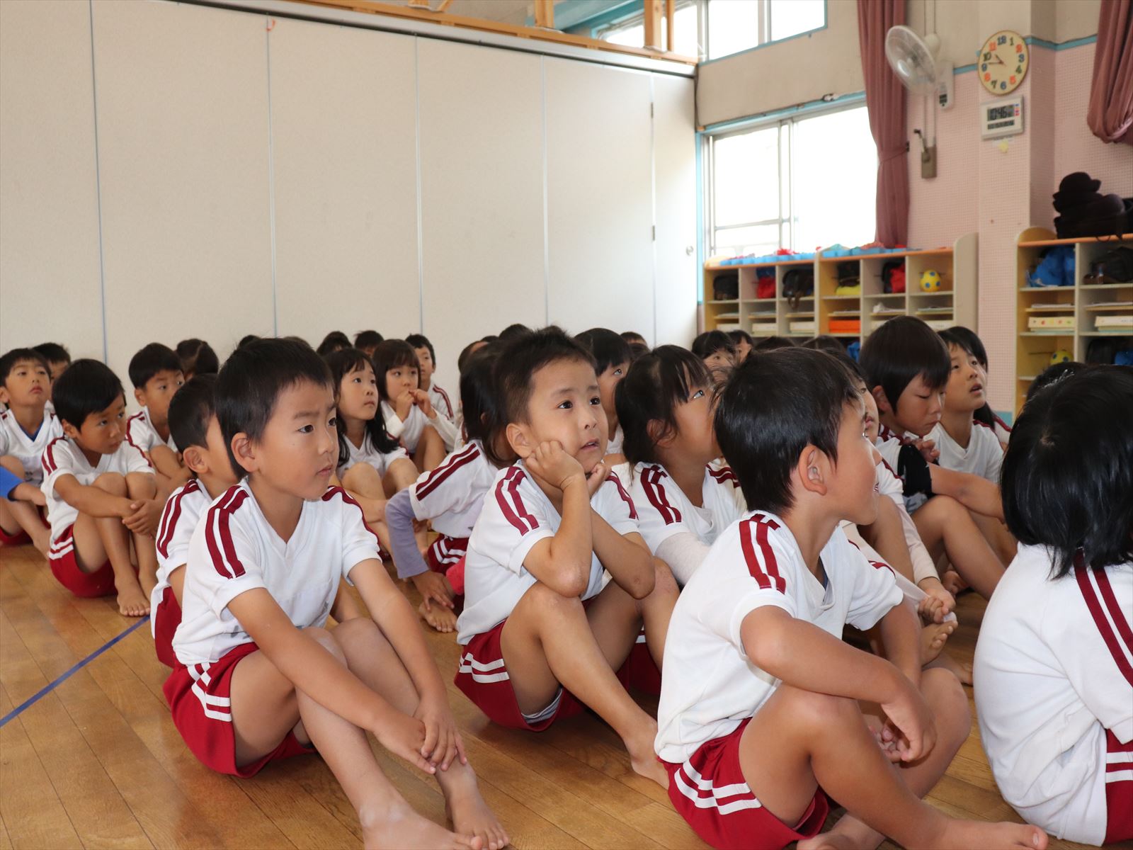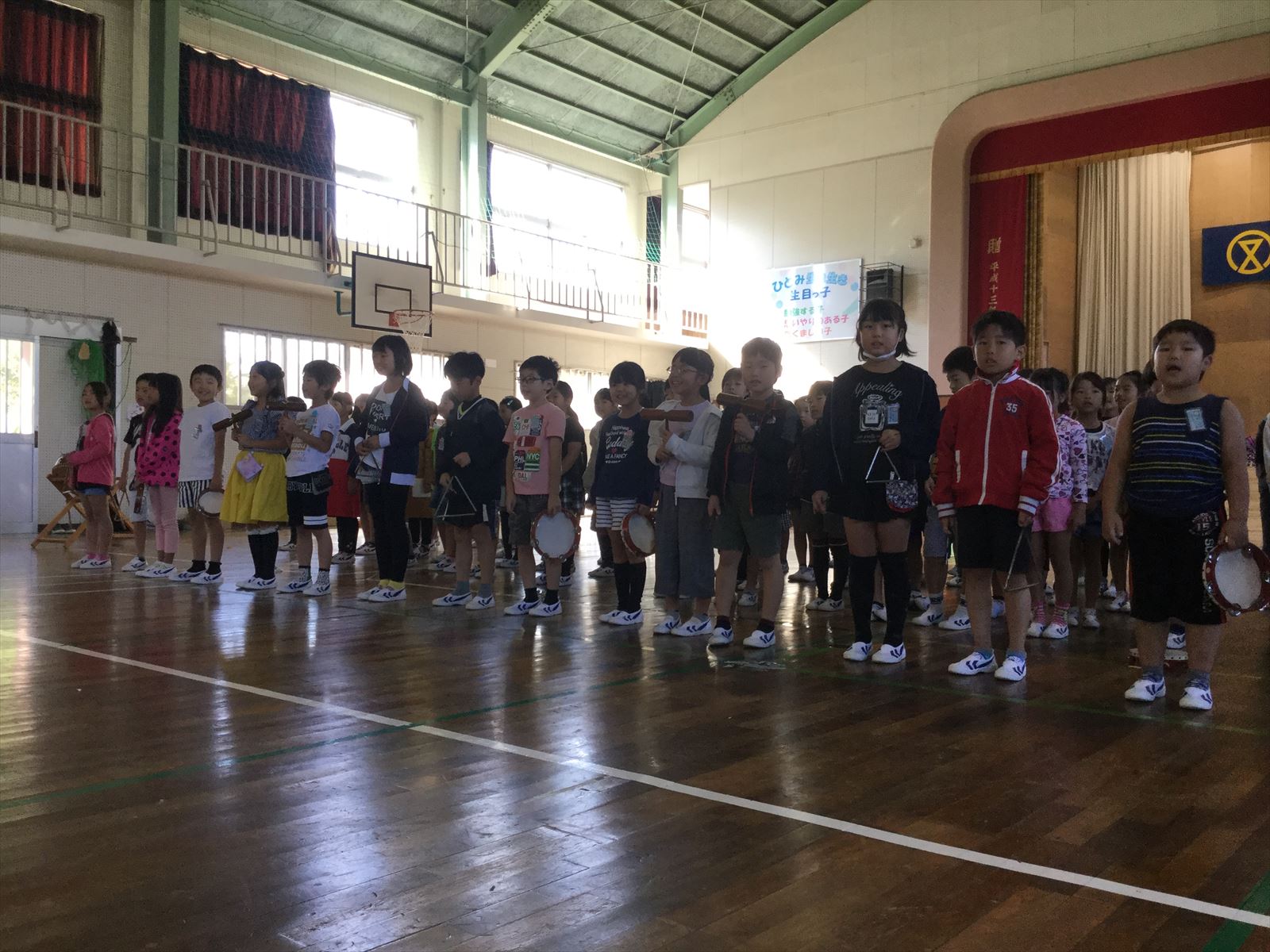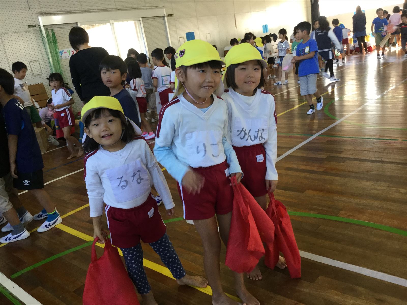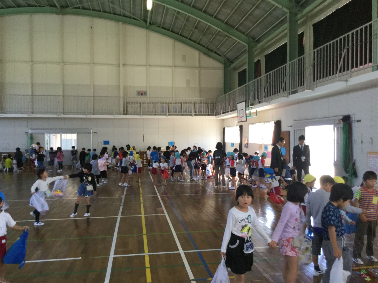 生目幼稚園、跡江保育所、冨吉保育園と1・2年生で体育館がにぎわっていましたよ!