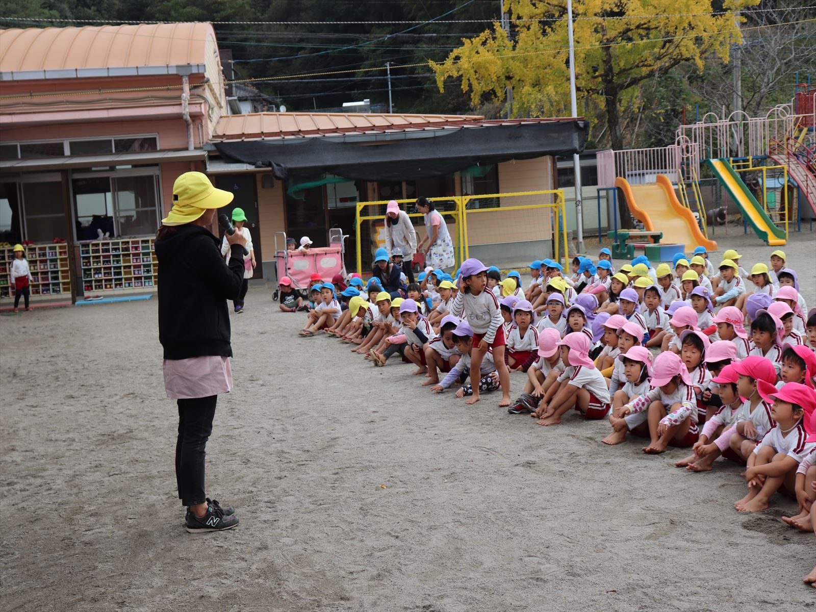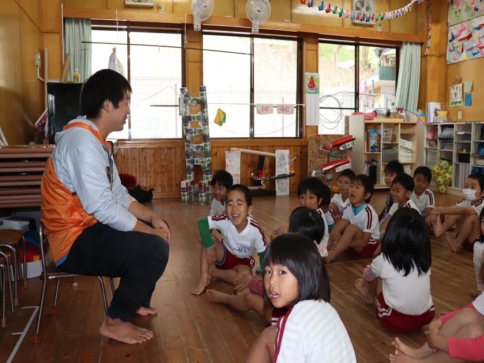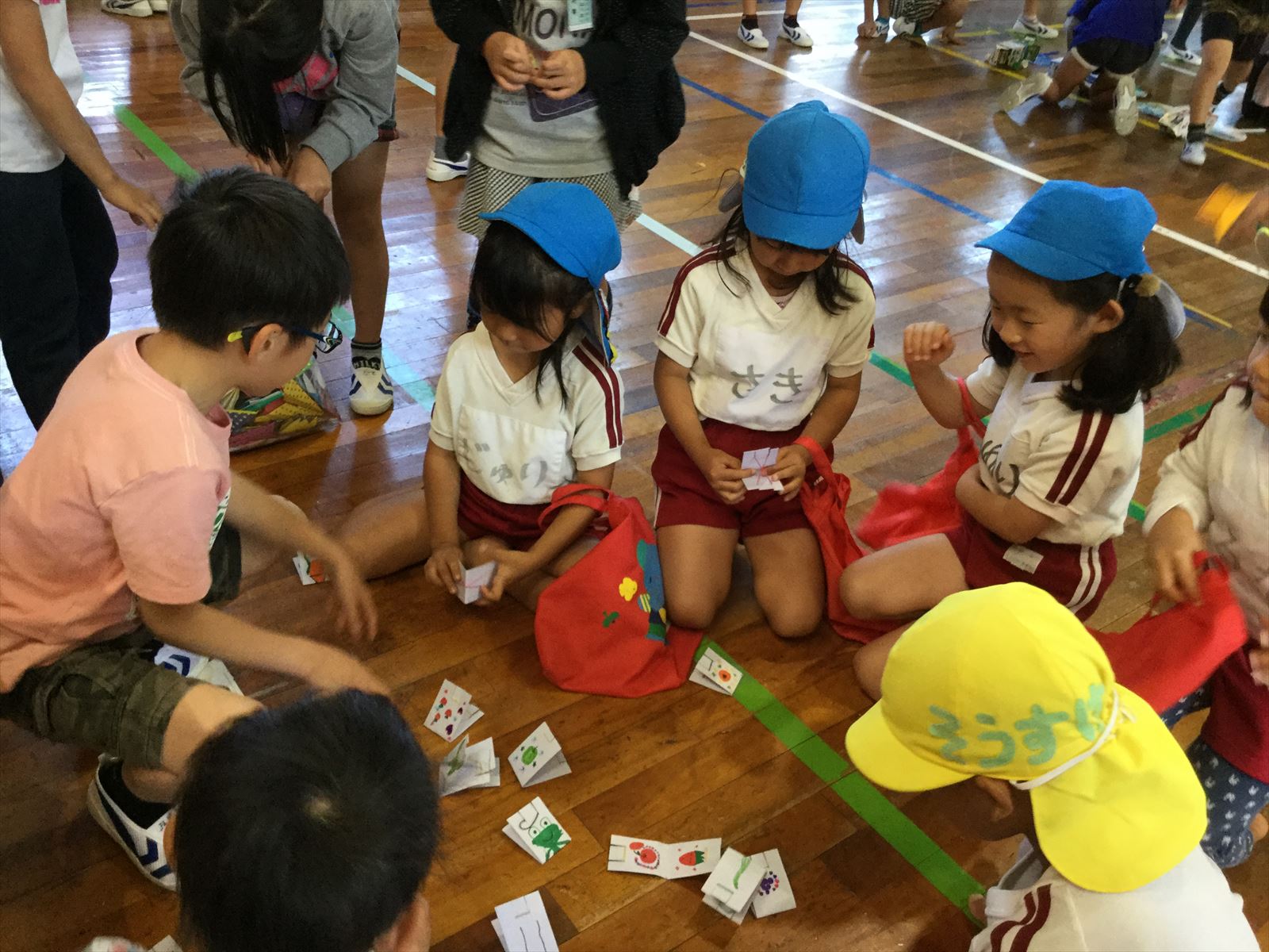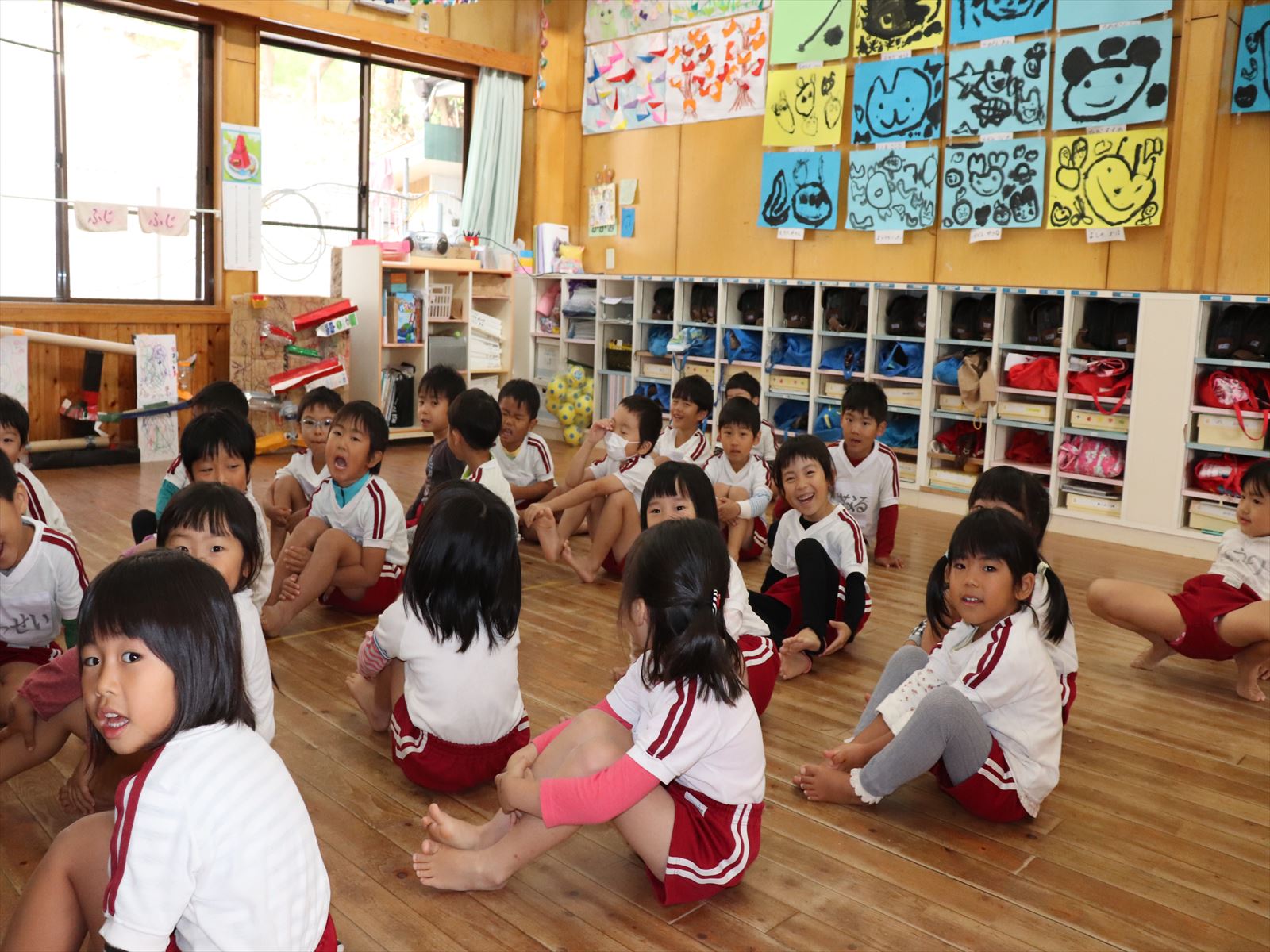 生目幼稚園、跡江保育所、冨吉保育園と1・2年生で体育館がにぎわっていましたよ!