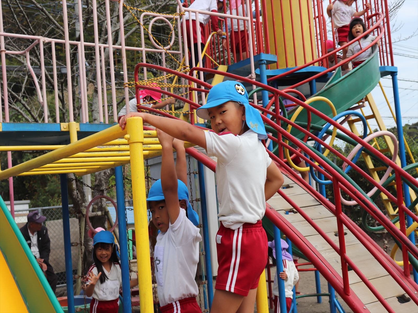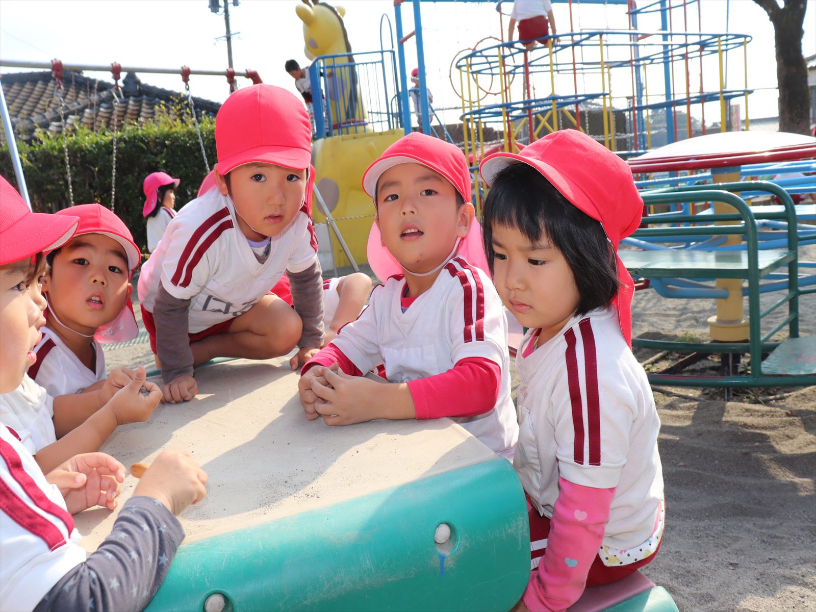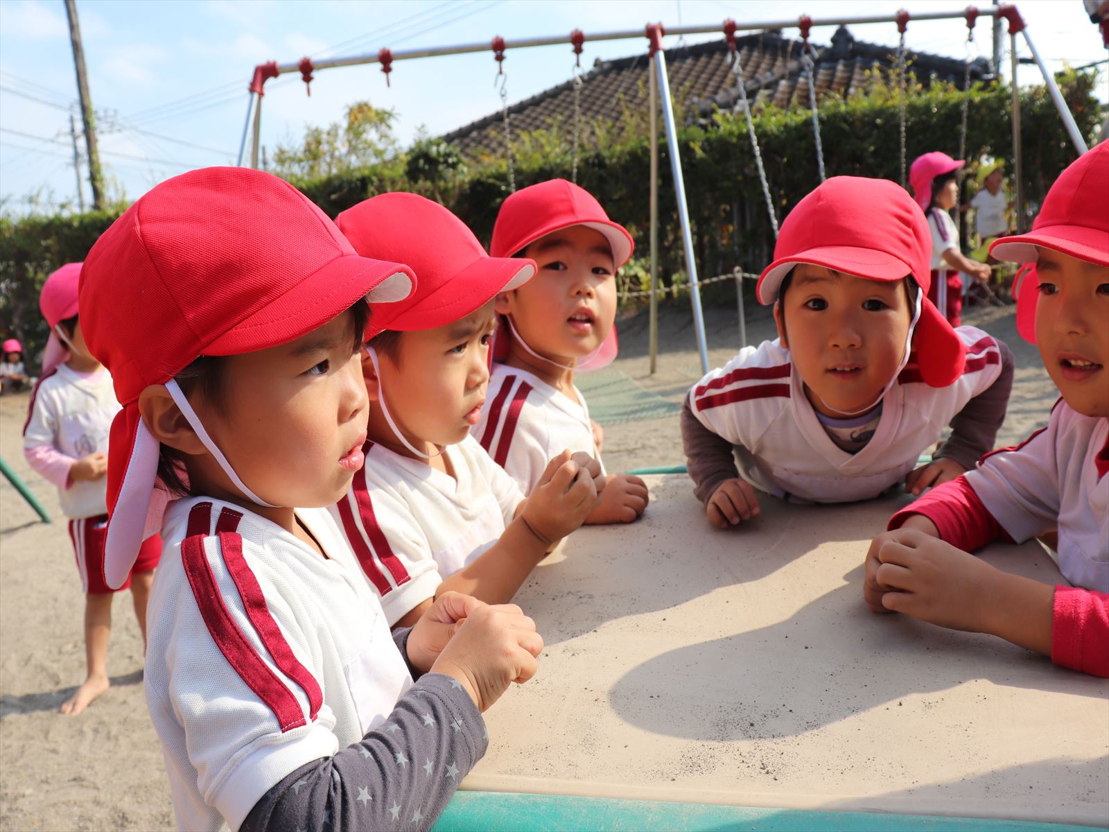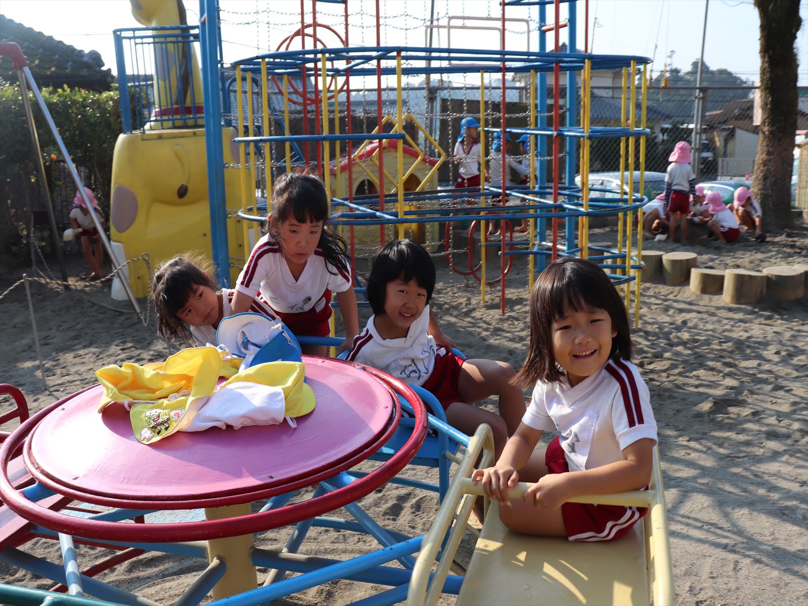 保育園部の子ども達は外でのんびり遊んでいました。