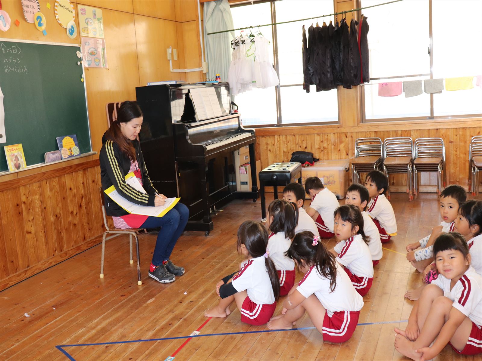 年少さんは発表会の歌の練習です。