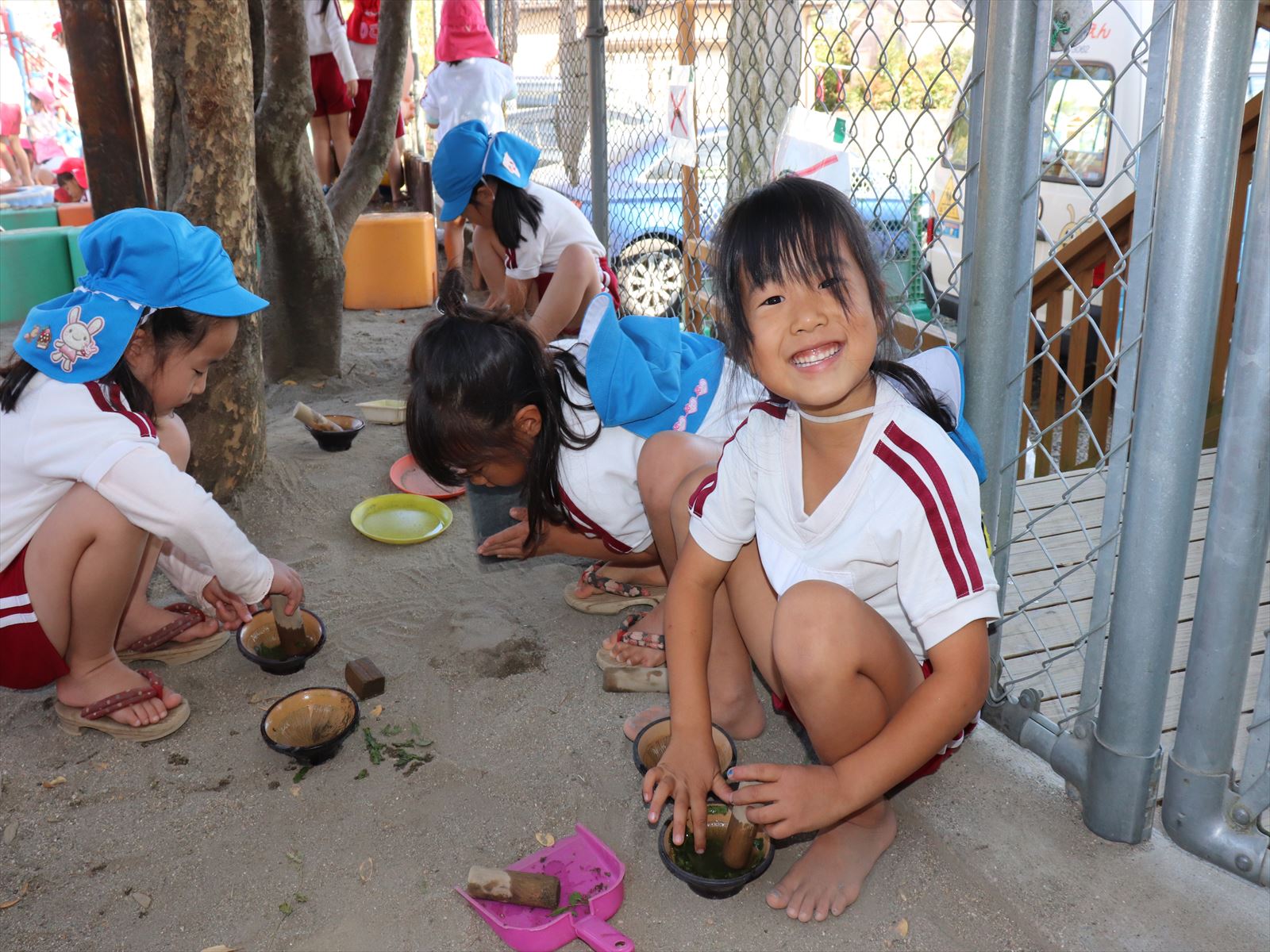 「お茶」作りを女の子はしていました。