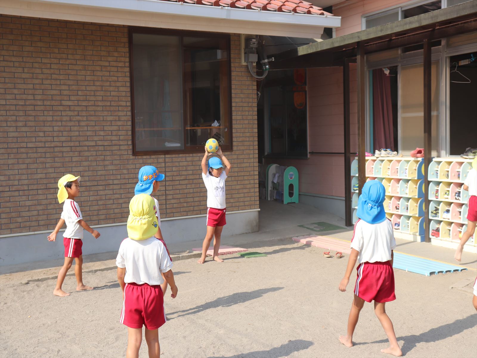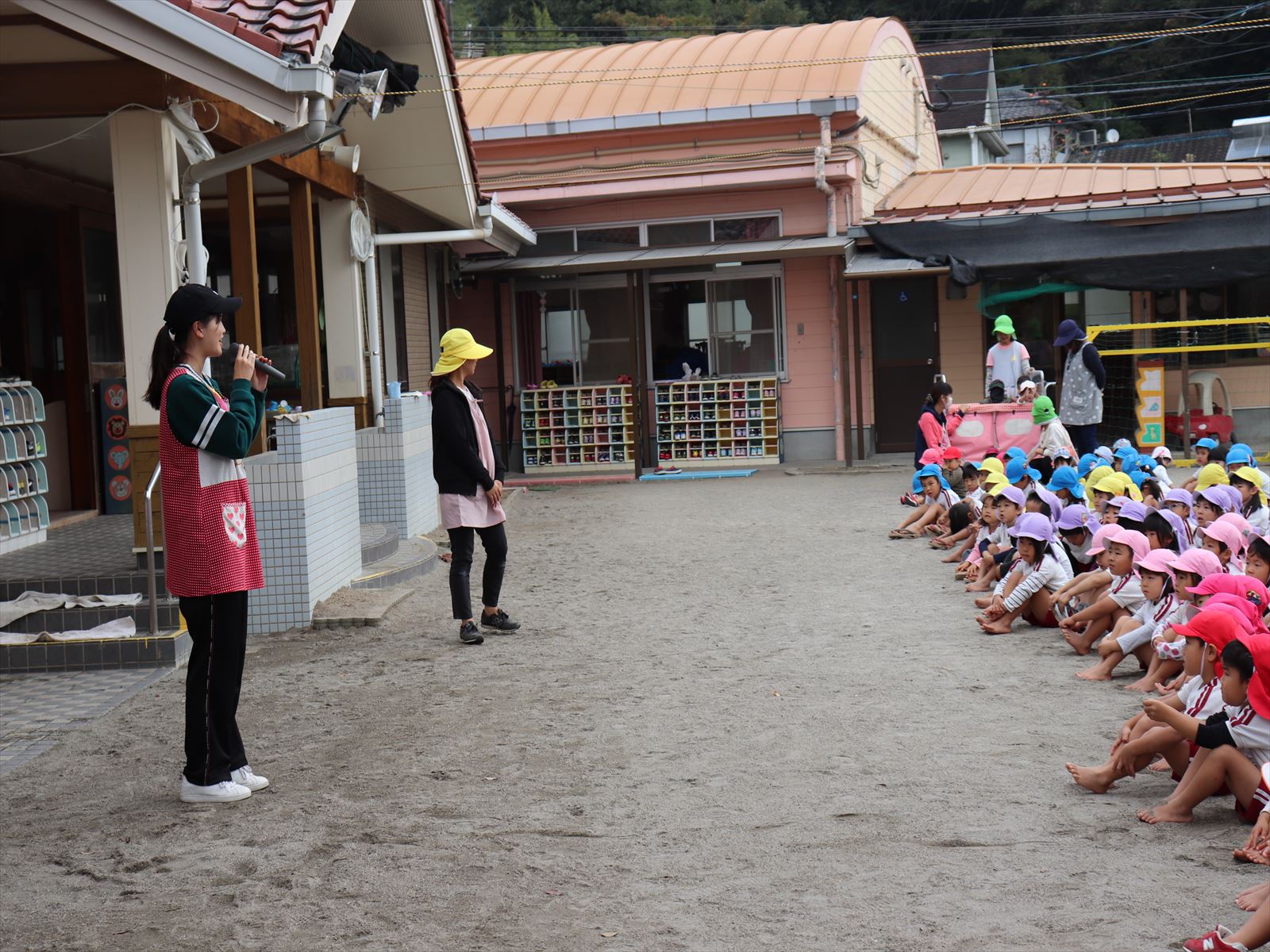 年長さんは全体になげかけをしていました。