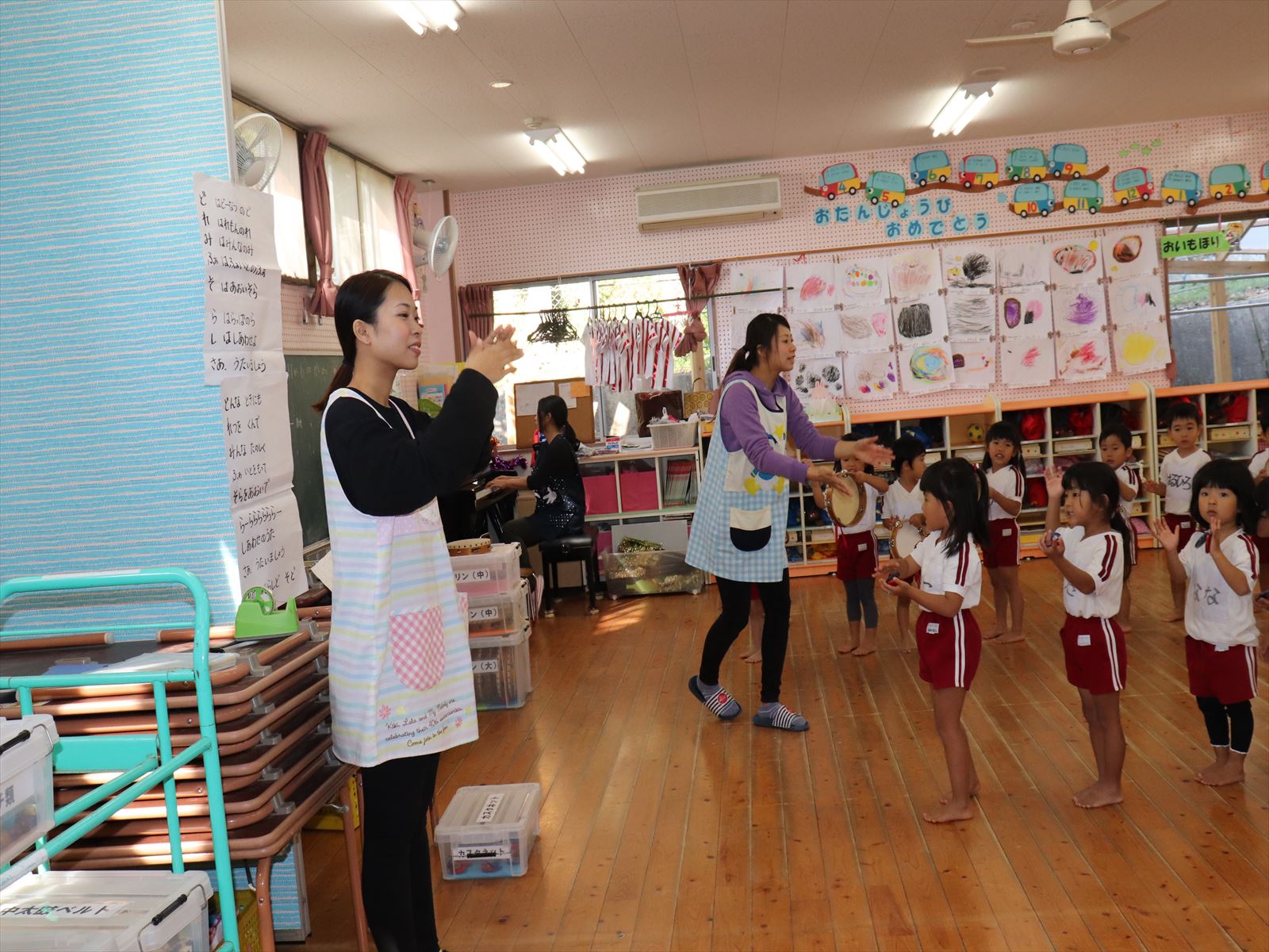 ピアノの音を聞きながら、タイミングを合わせます。