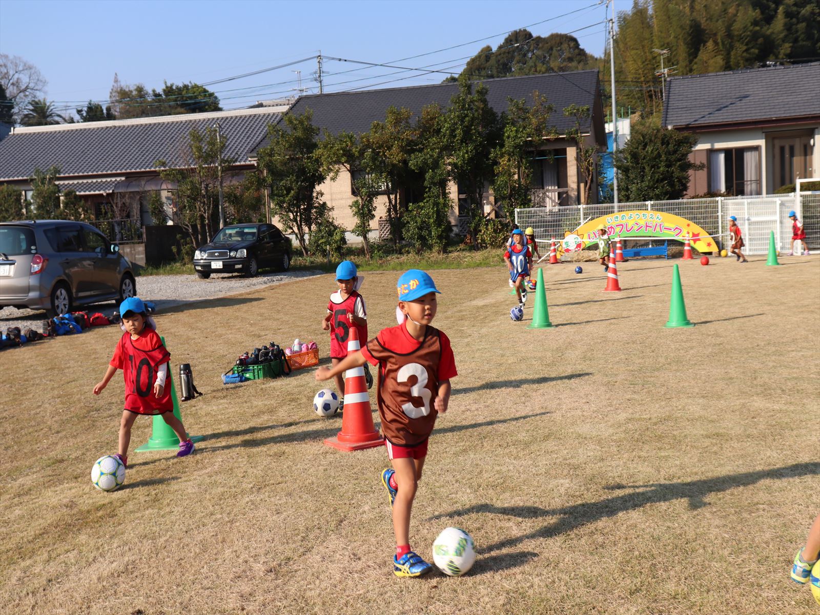 フレンドパークでは火曜のサッカー教室です。