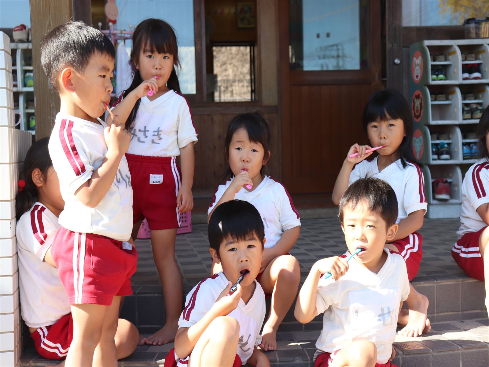 もも組さん、歯磨き中です。