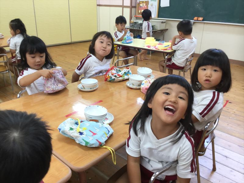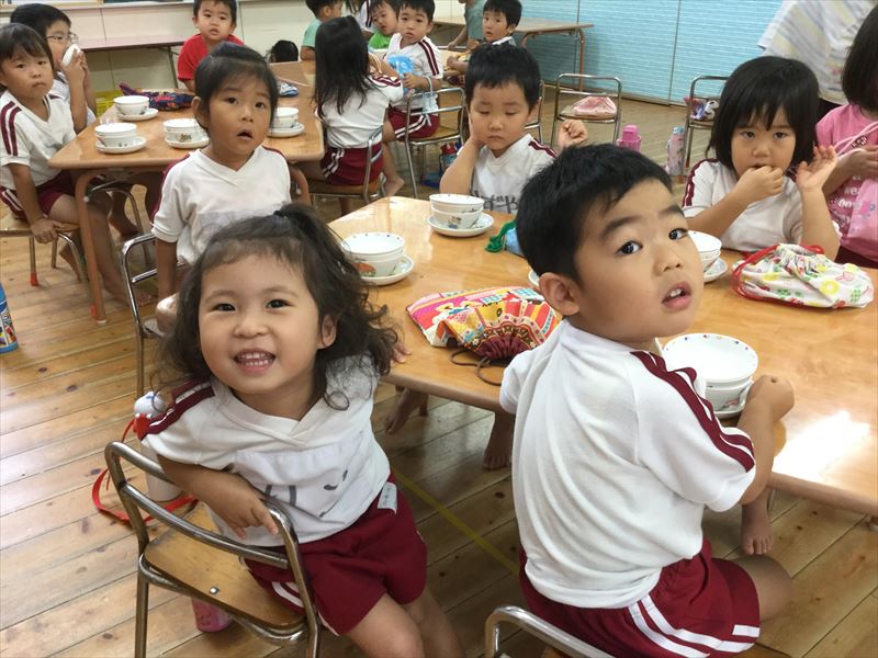給食を食べ終わったところでした。