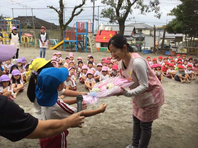 今日で最後のバス添乗の先生に、お礼の気持ちを子ども達と伝えました。