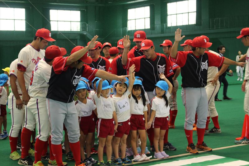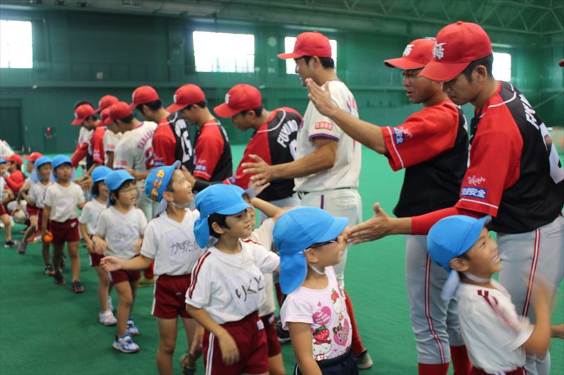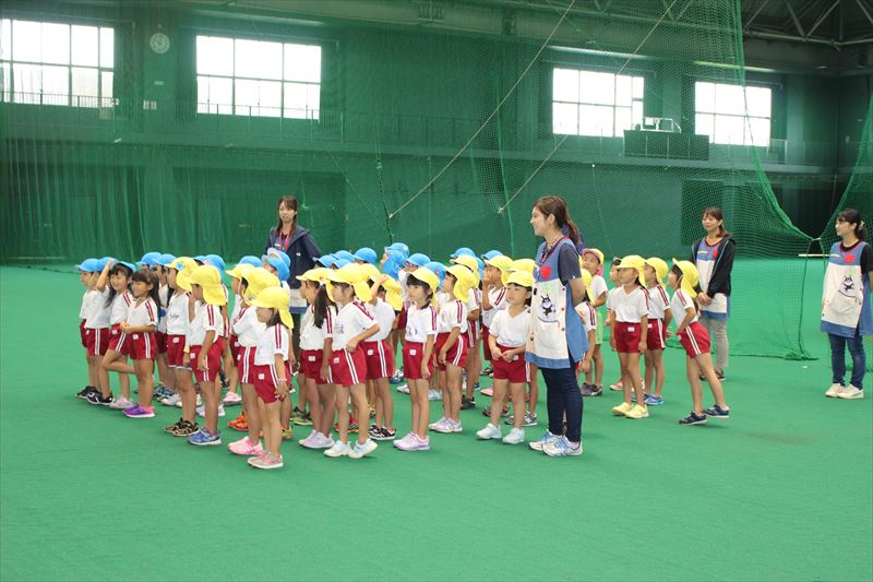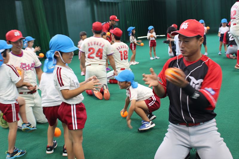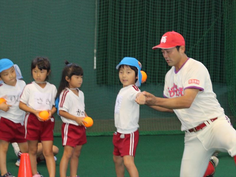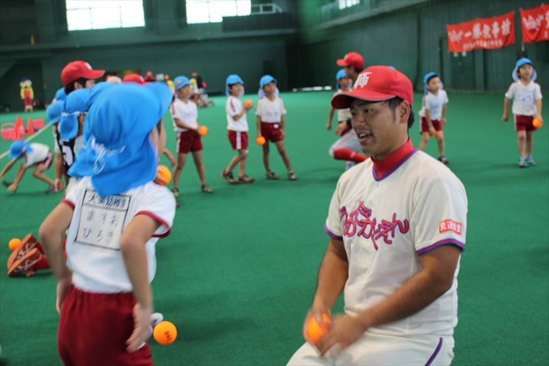 そして、野球教室では一人一個のボールを使い、ボールの投げ方や