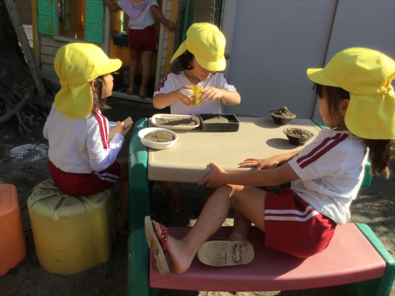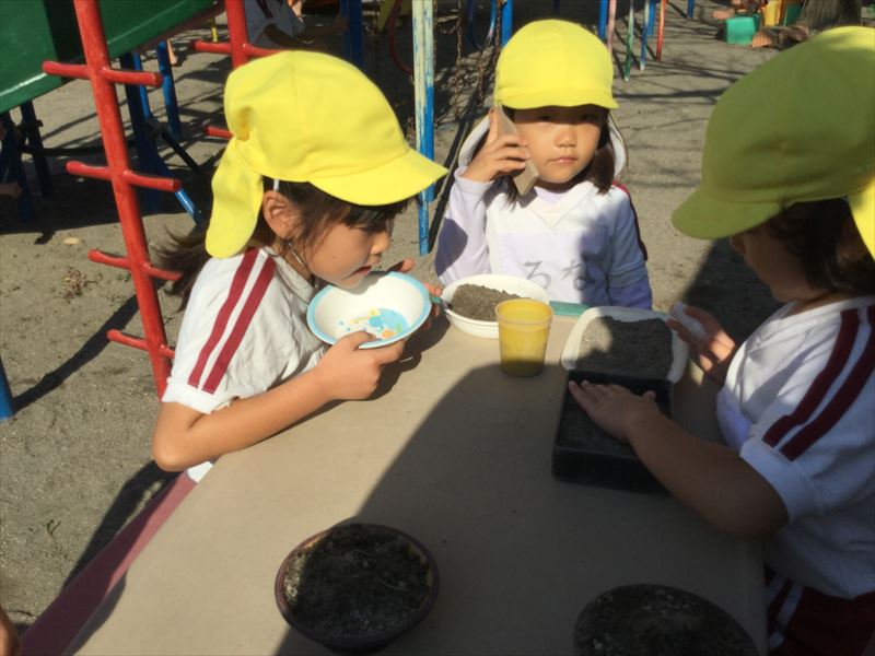 朝の外遊び♪ままごと遊びかな