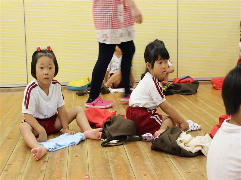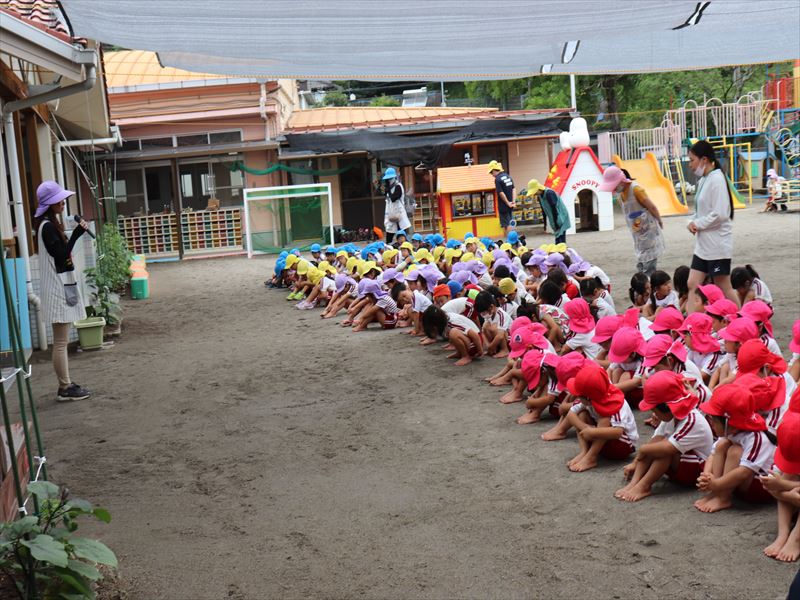 年中さん、園庭で水遊び♪