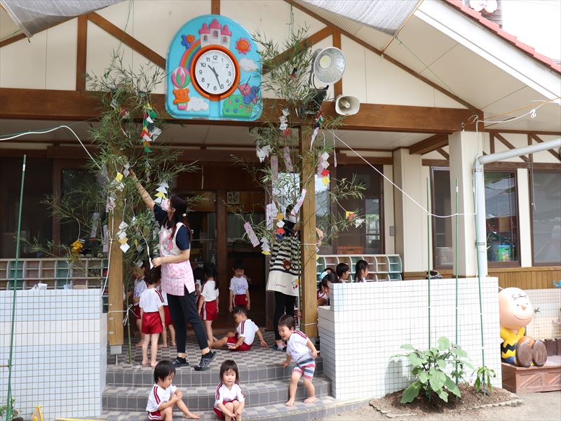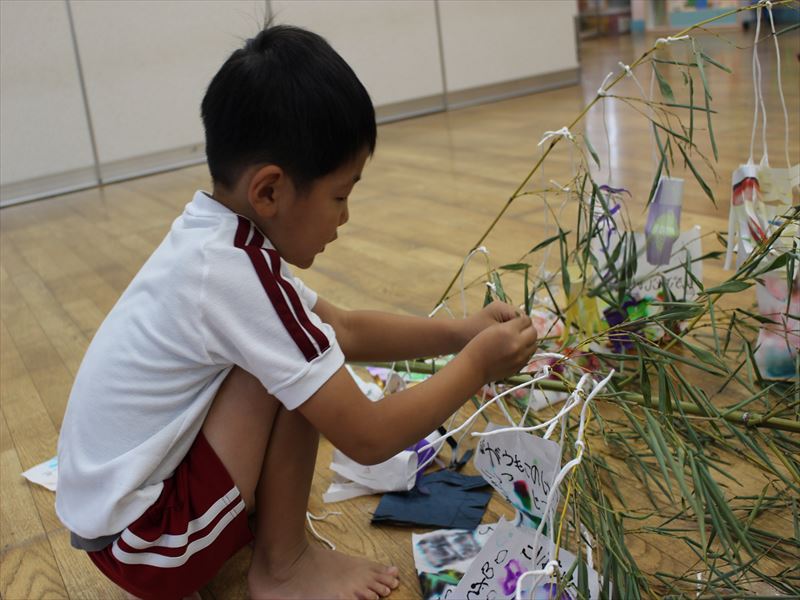七夕の飾りつけをしていました♪