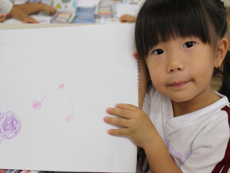 年少さん、クレヨンを使っていました